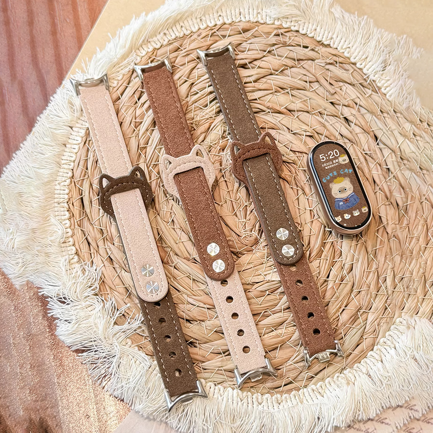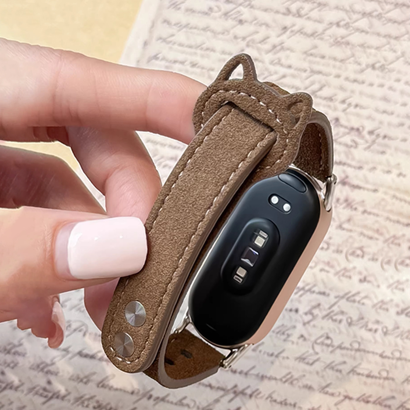 适用小米手环10/9/8表带可爱双钉猫耳8代腕带智能小米手环9表带10代运动女时尚翻毛秋冬小米手环8手表带
