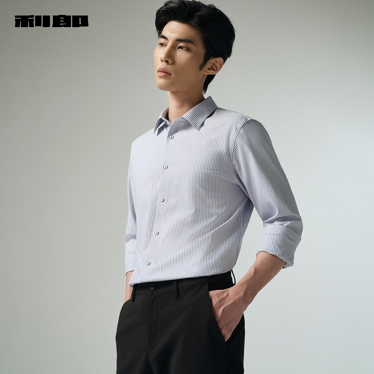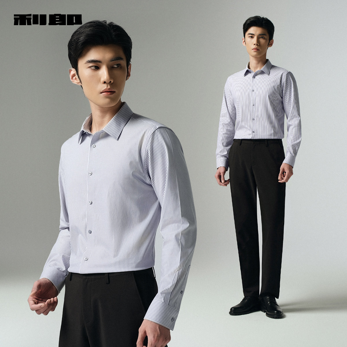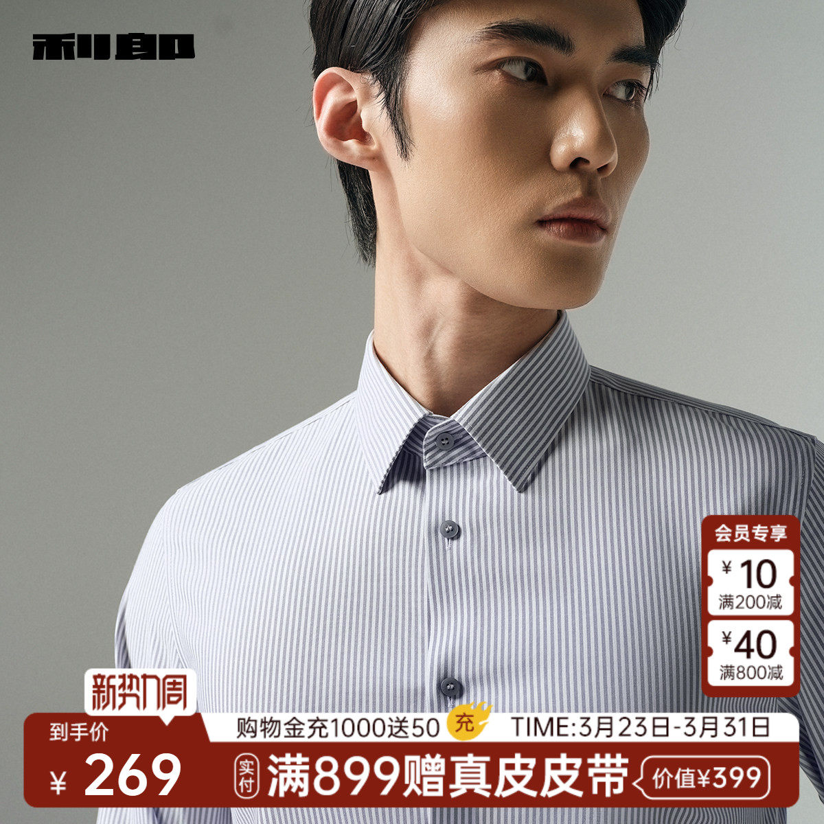 【免烫】利郎官方微弹条纹衬衫男士春秋款新款休闲男装尖领衬衣