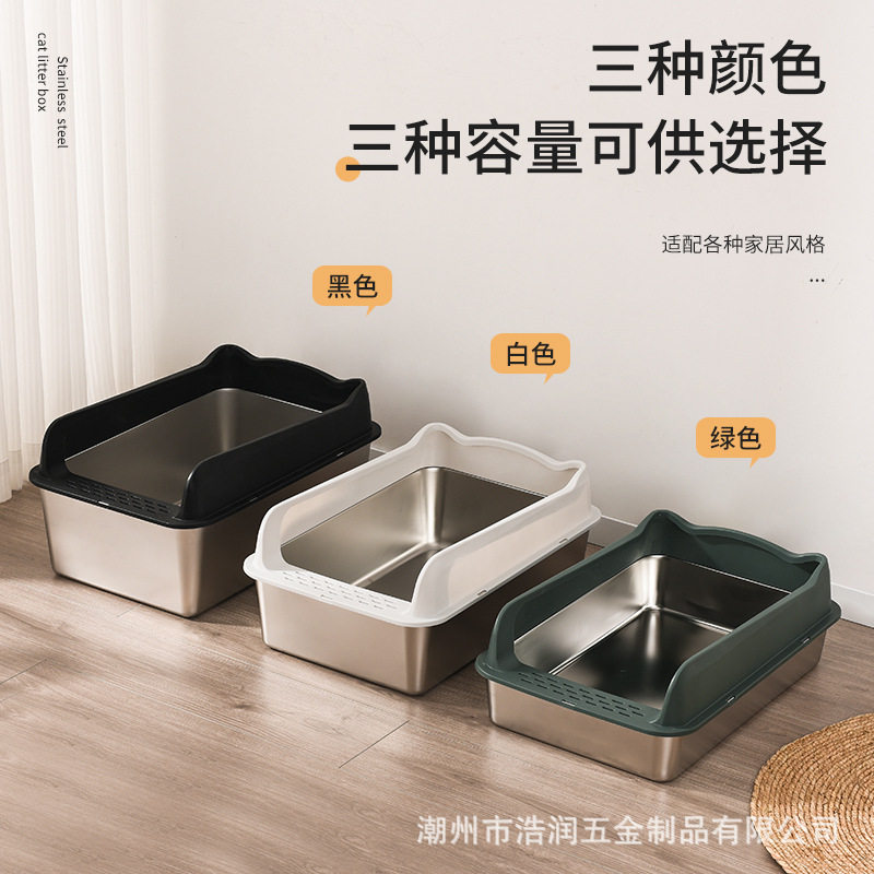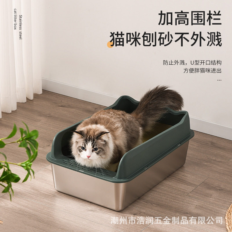 亚马逊特大号不锈钢猫砂盆大容量高围栏防带出防外溅半封闭猫厕所