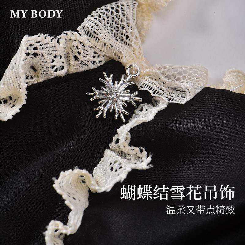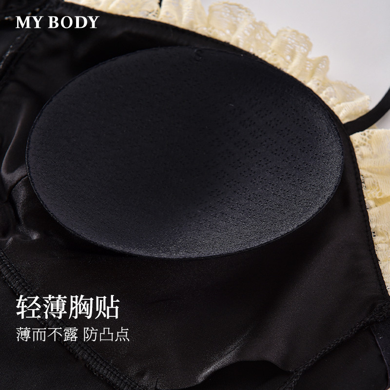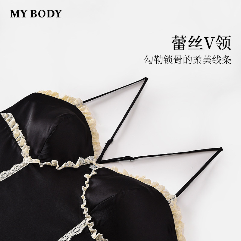 商场同款MYBODY夏季新款性感睡衣女线条感蕾丝带胸垫纯欲吊带睡裙