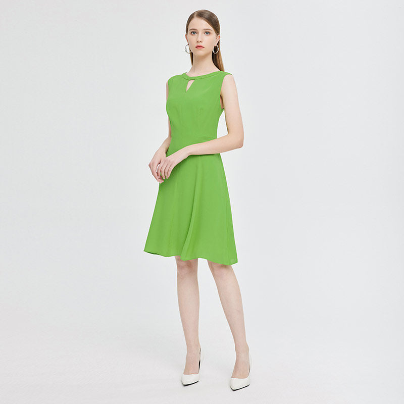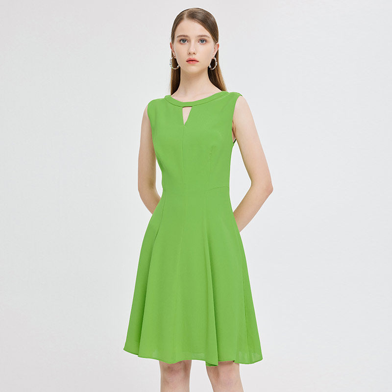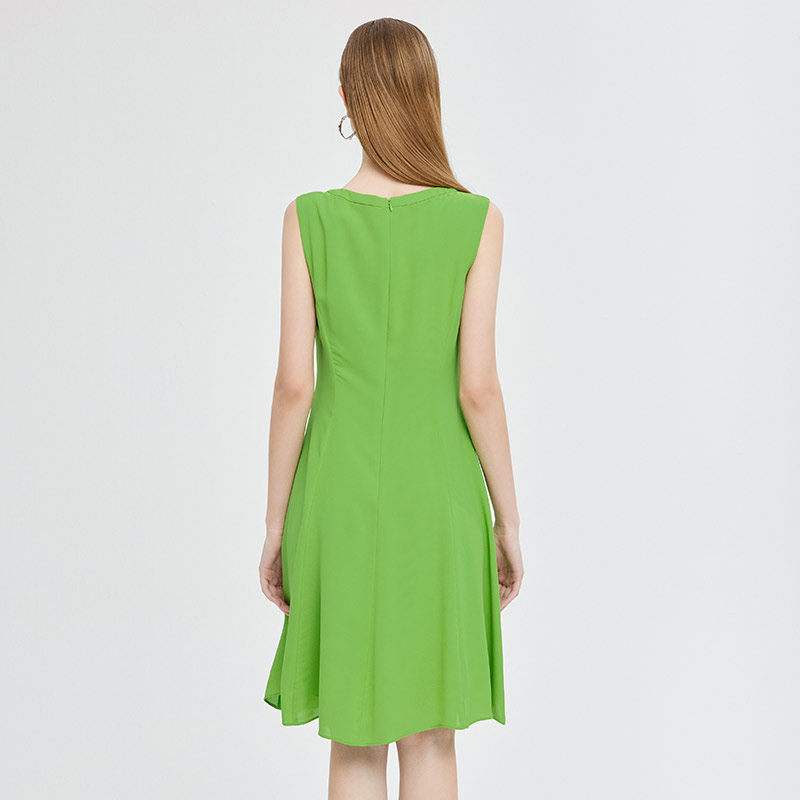 马天奴早春夏新款绿色雪纺连衣裙收腰通勤无袖裙子度假休闲时尚