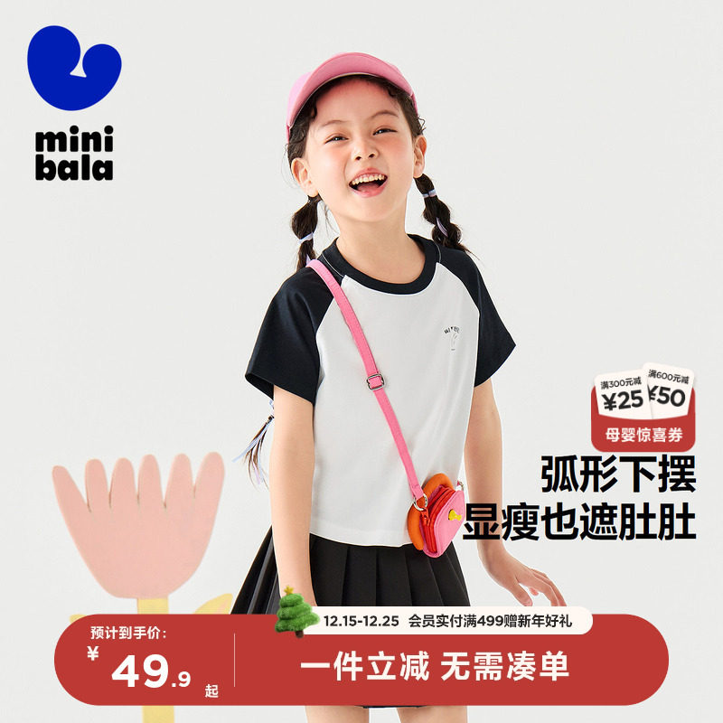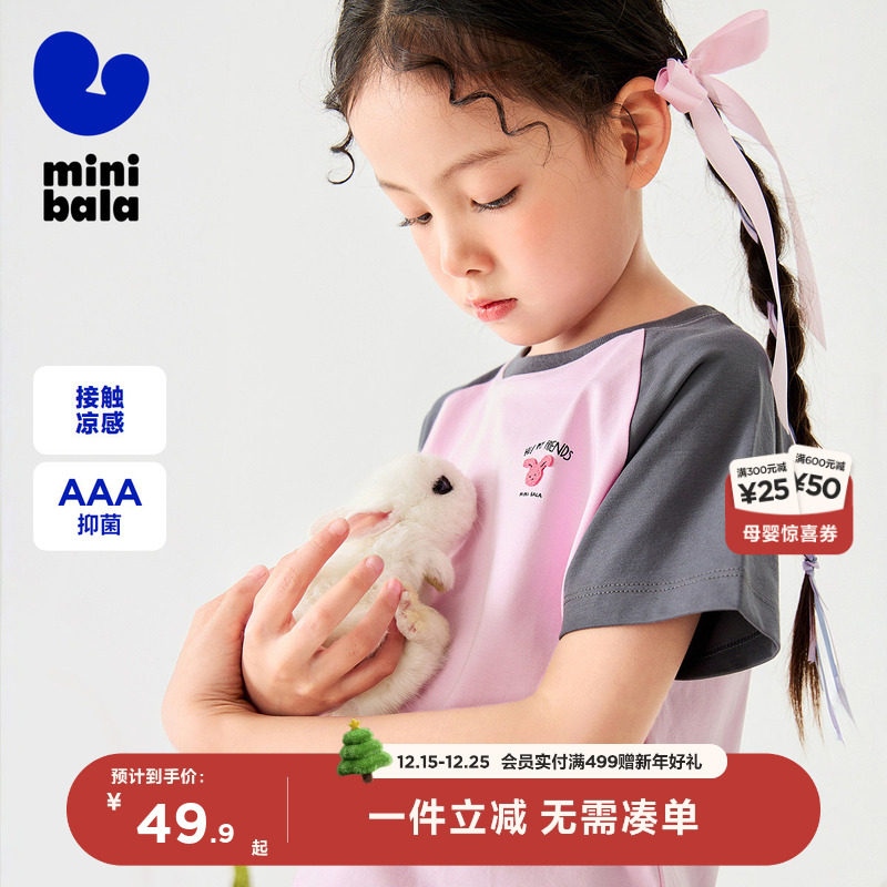 【棉感速干】迷你巴拉巴拉女童T恤儿童凉感抑菌不闷汗亲子短袖T