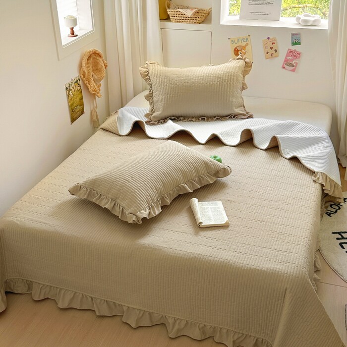韩系纯棉床盖三件套柔软亲肤加厚全棉床单四季通用榻榻米炕盖防滑
