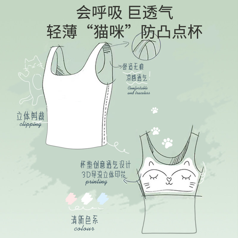 高中生少女背心内衣女学生初中发育期定型青少年女孩运动文胸女童
