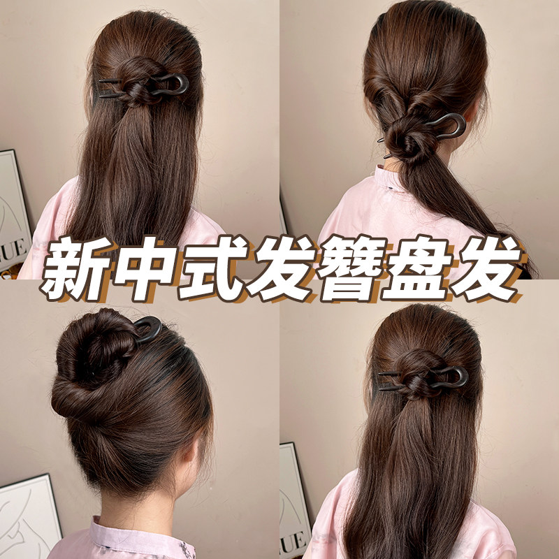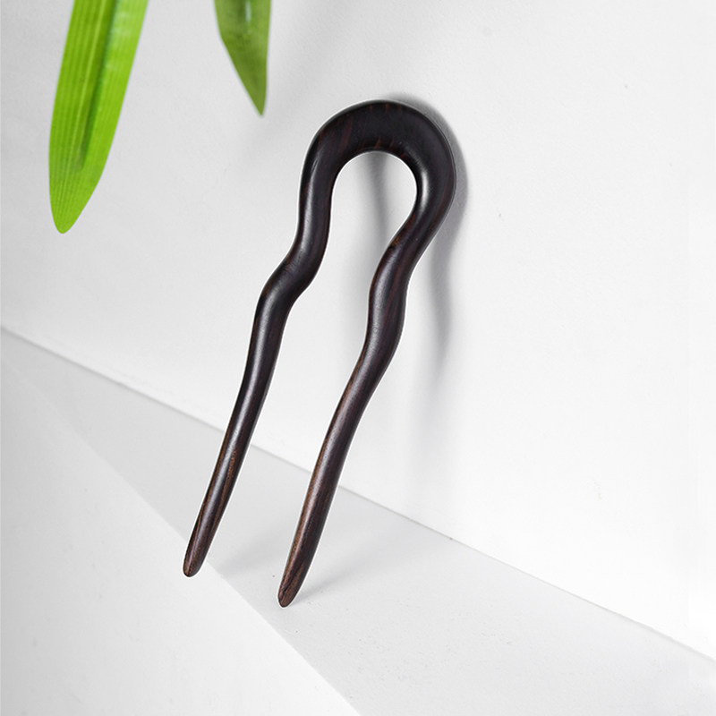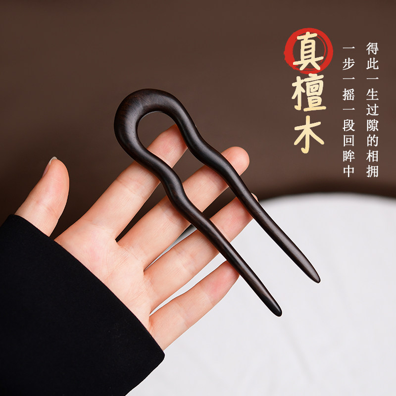 短小发簪U型黑檀木新中式盘发木簪簪子日常通勤发钗叉U形发插钗子