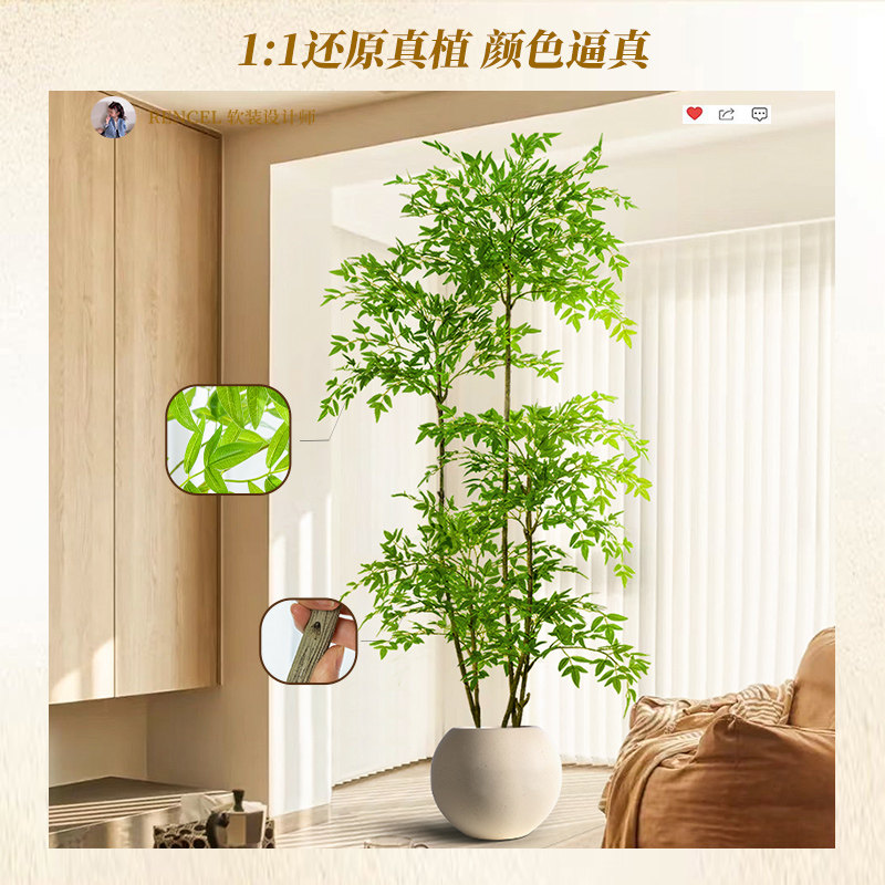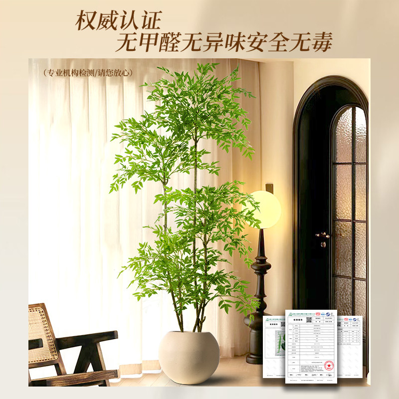 仿真绿植南天竹轻奢感室内大型落地高级感盆栽装饰品仿生假树摆件