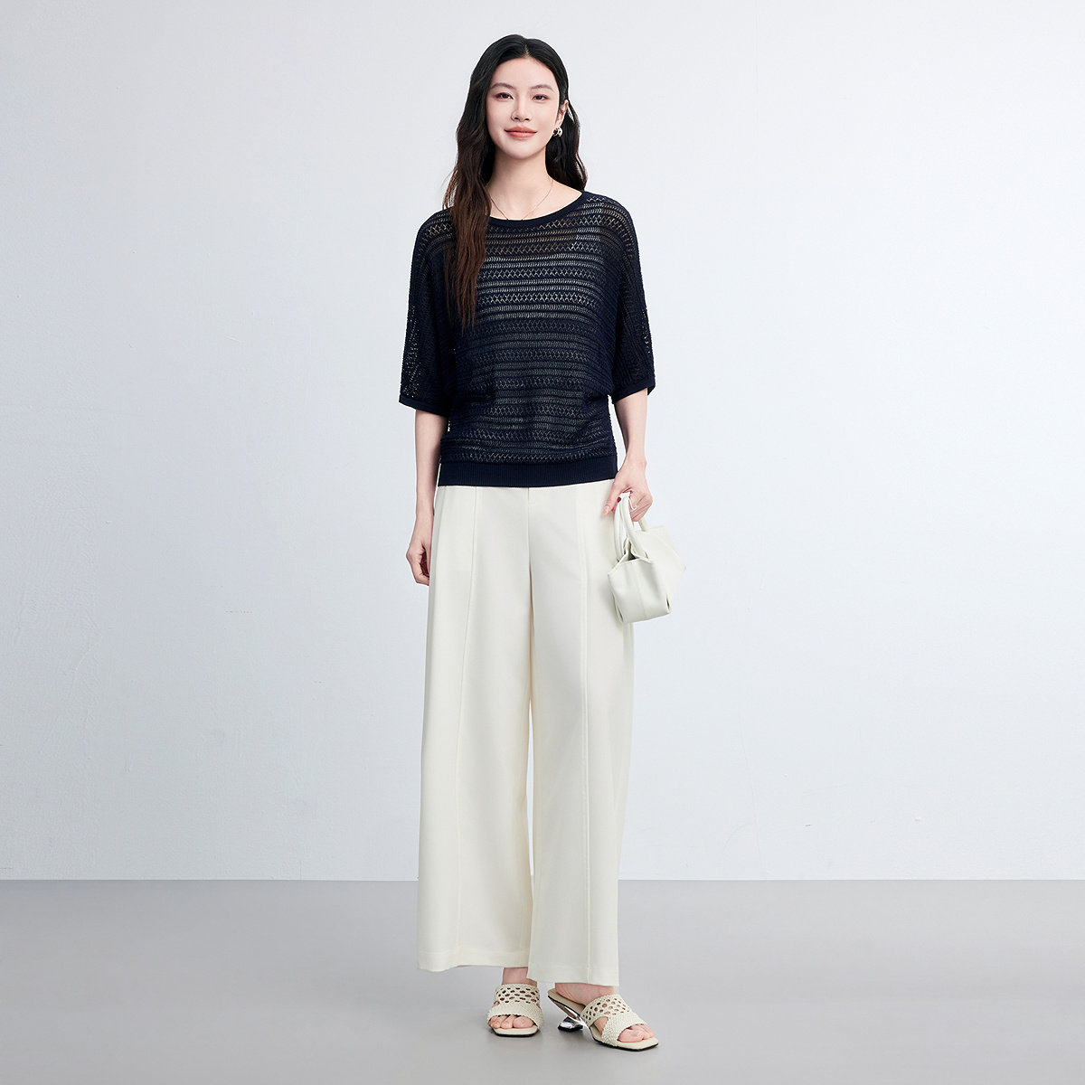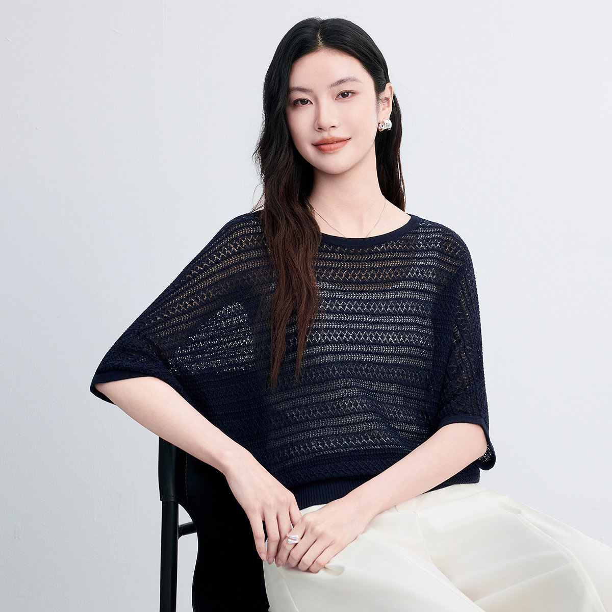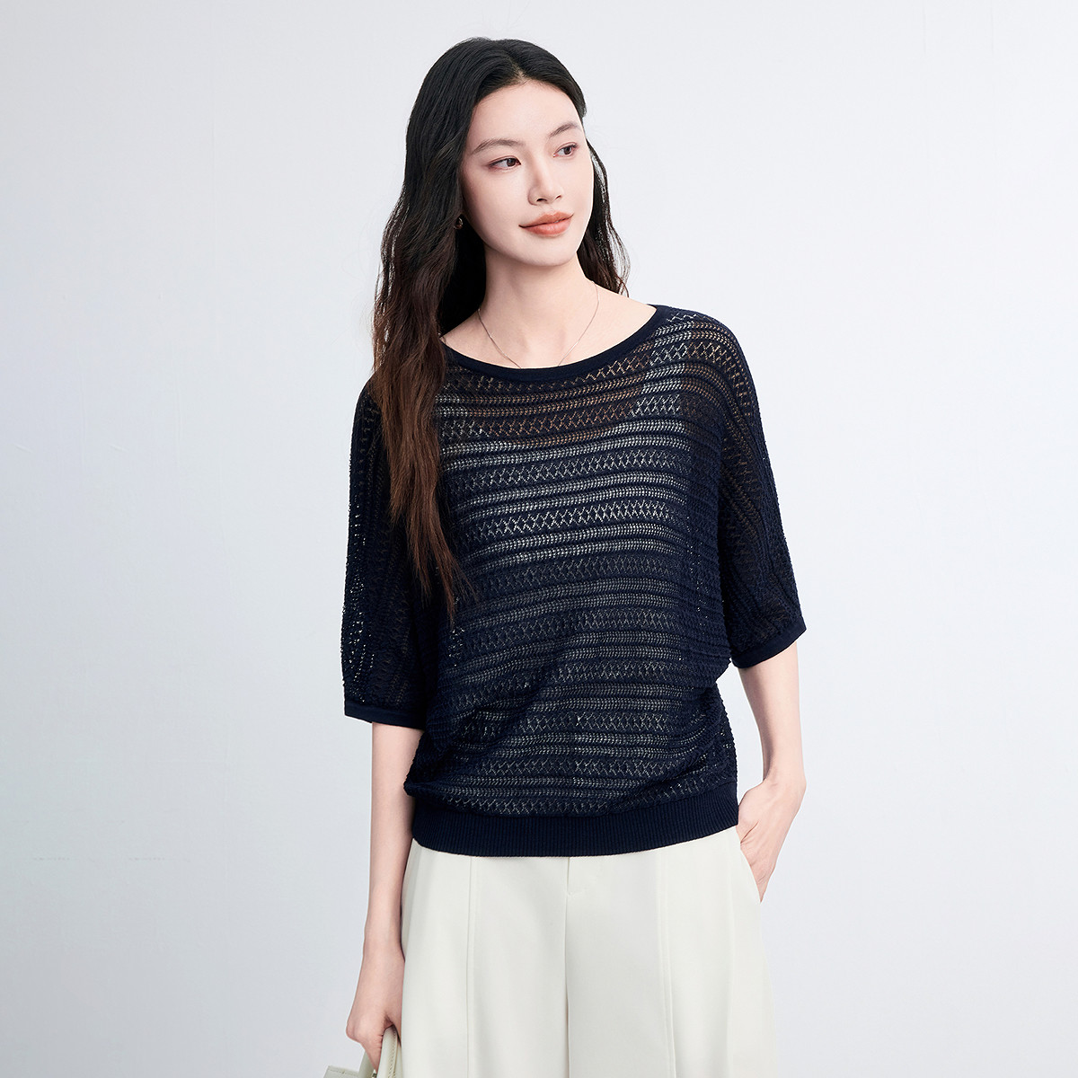 FINITY菲妮迪针织衫2026年春季新款简约连肩袖优雅镂空设计上衣女