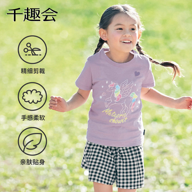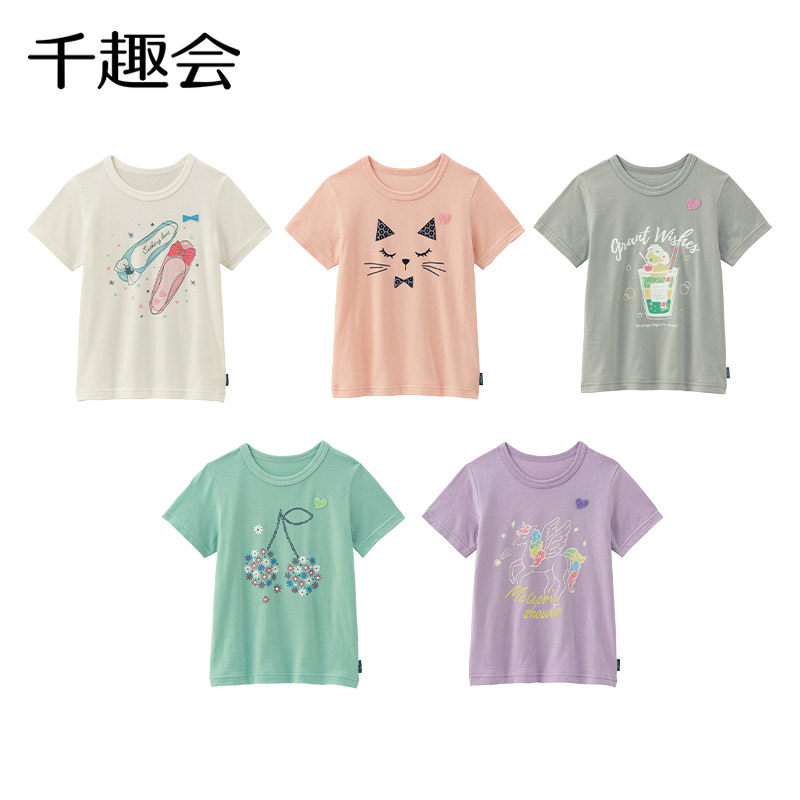 千趣会夏款儿童短袖童趣休闲清新透气轻薄柔软棉质女童T恤
