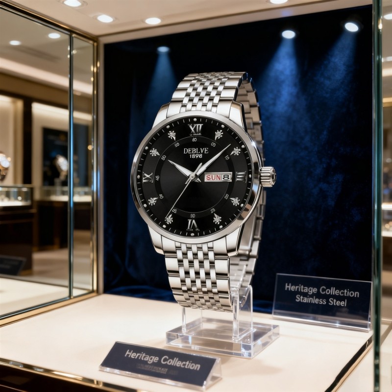 正品瑞士2024新款手表男士全自动机械风防水精钢带双日历男表夜光
