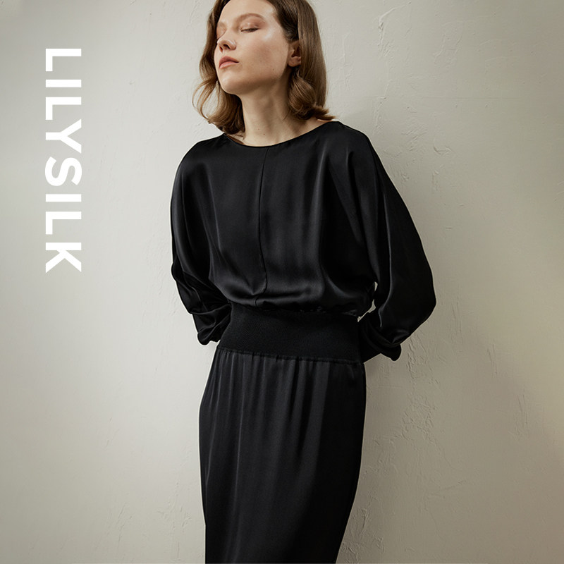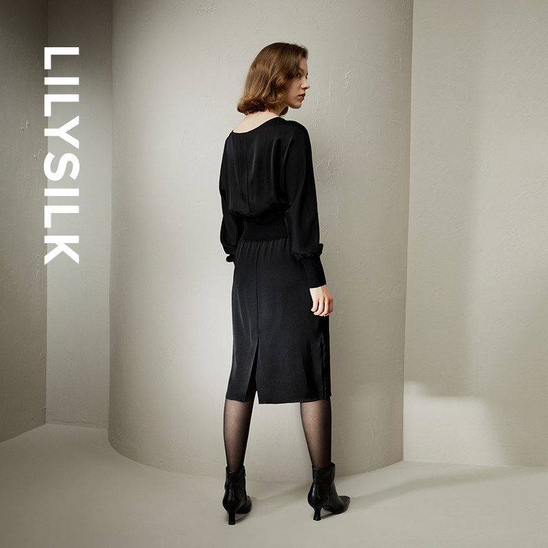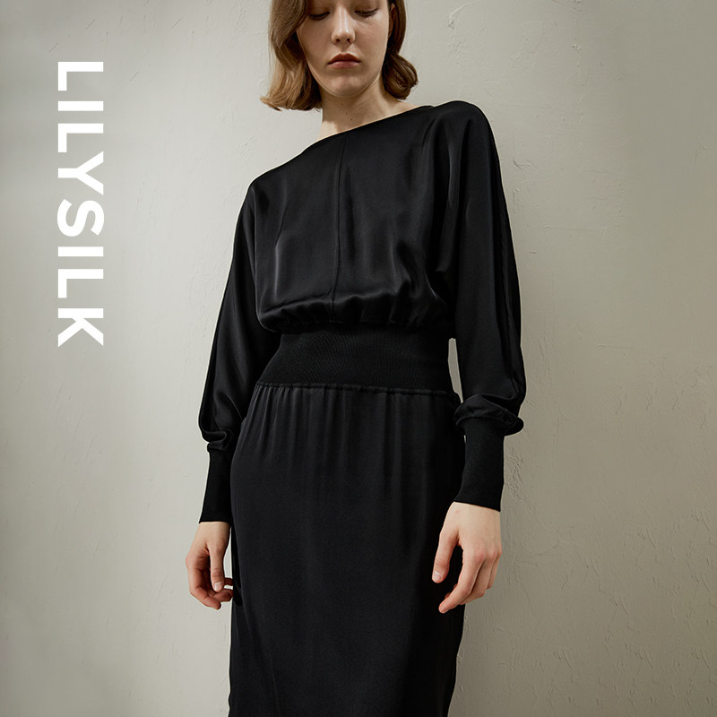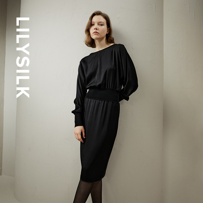 LILYSILK莉莉秀客拼接连衣裙修身显瘦女士打底裙长袖慵懒风包臀裙