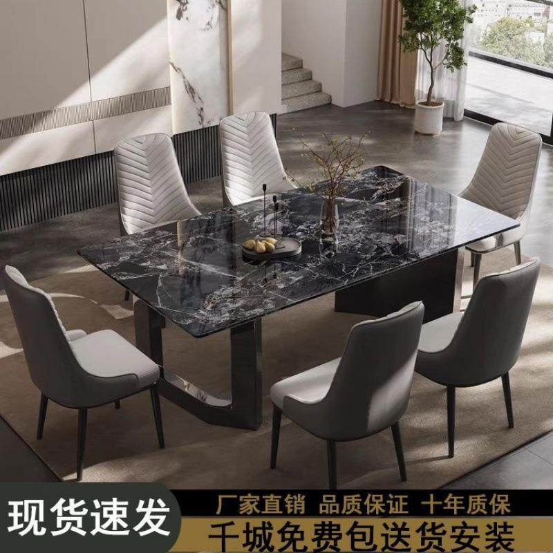 轻奢超晶石现代高端简约桌椅组合长方形家用饭桌亮光大理石餐桌