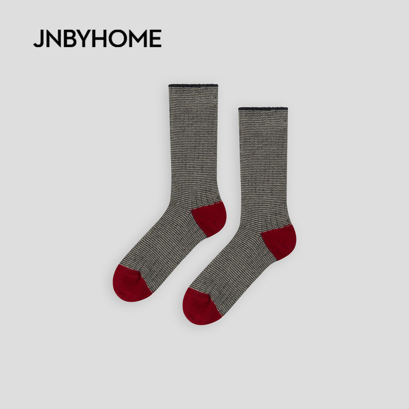 JNBYHOME江南布衣26年春季中筒家居袜中筒袜居家印花休闲款撞色