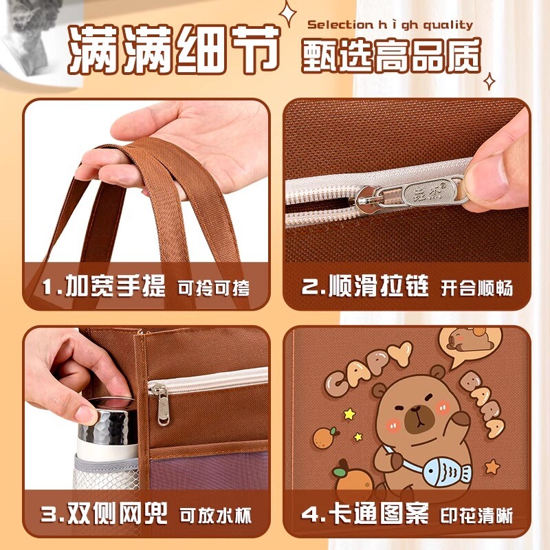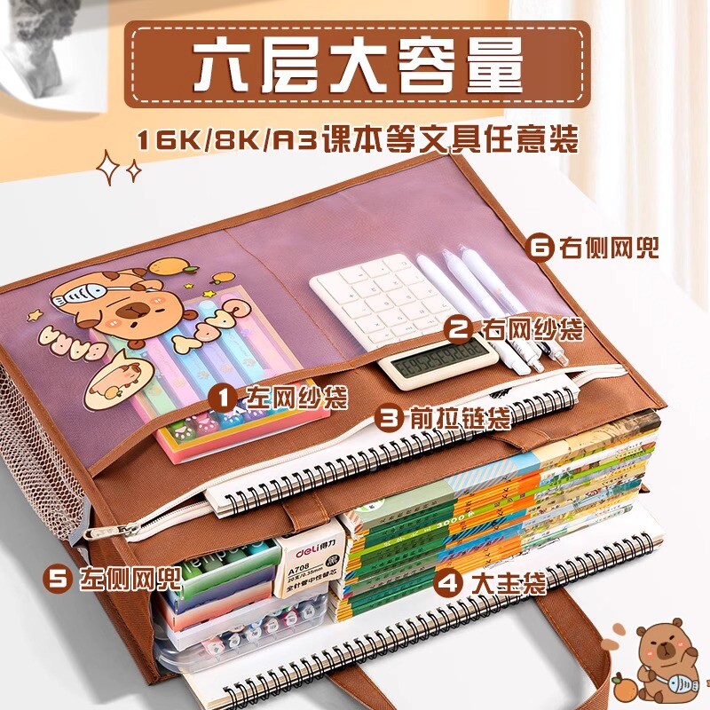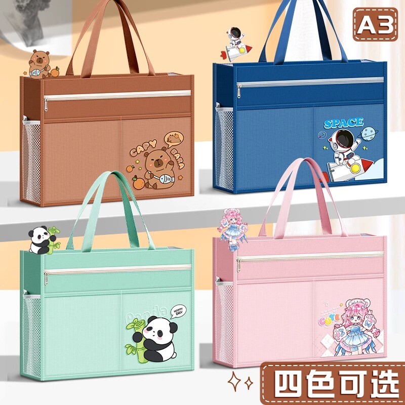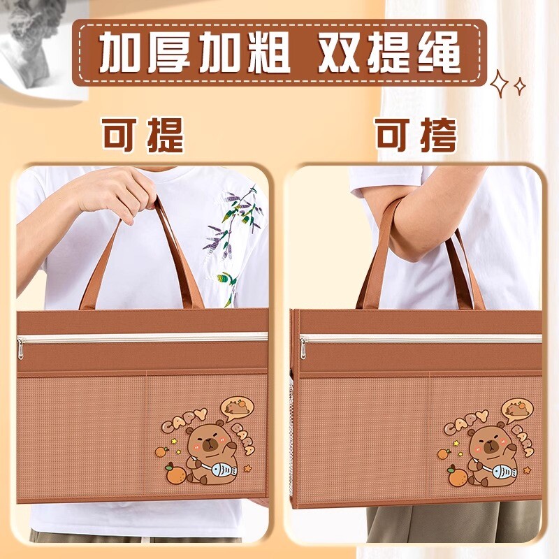 卡皮巴拉a3美术收纳袋8k画画工具袋A4文件袋拉链袋半透明资料收纳册初中学生作业袋手提袋拎书袋补习袋文件袋