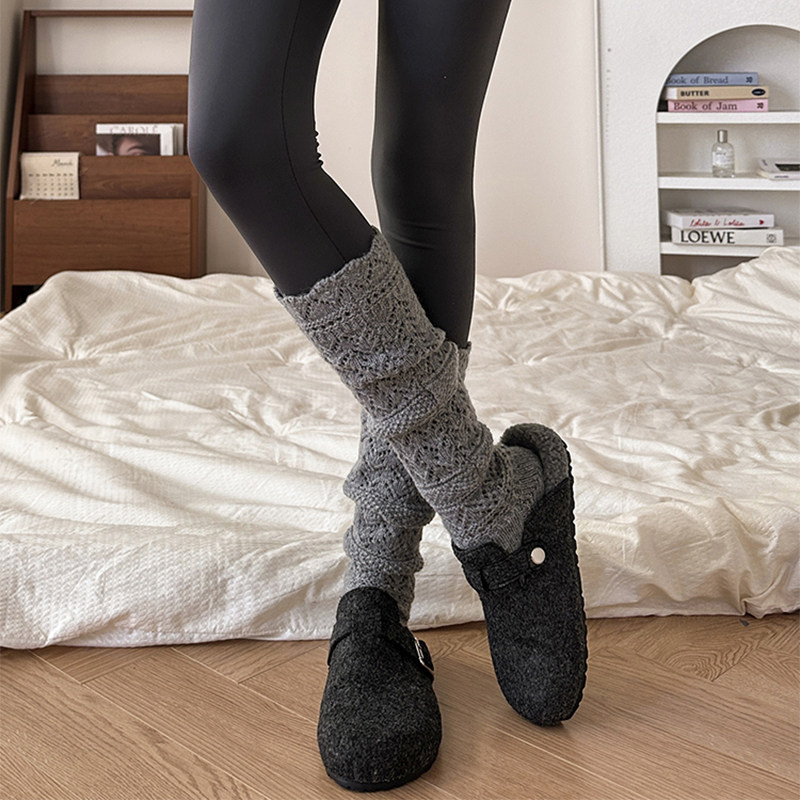 堆堆袜袜套袜子灰色花边女秋冬小腿配鲨鱼裤的保暖针织镂空长筒袜