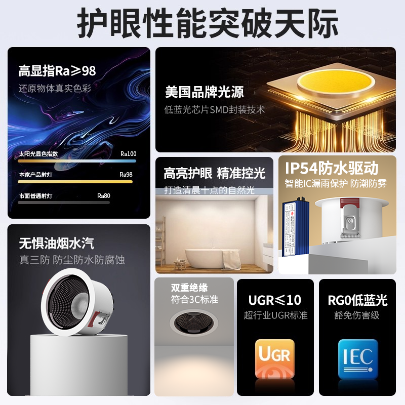 开孔75mm浴室防眩防水筒灯厨房卫生间防潮防雾淋浴房嵌入式天花灯