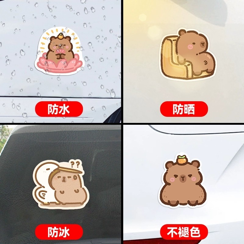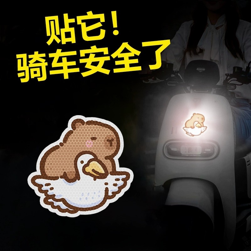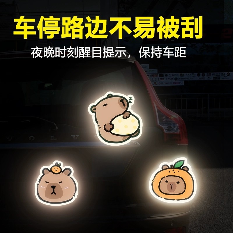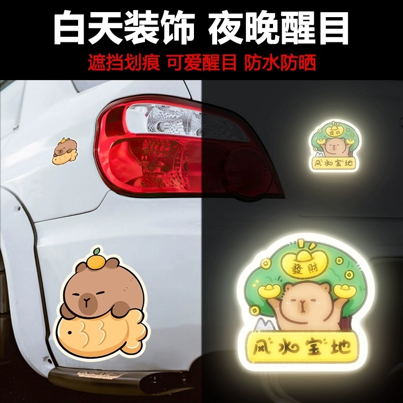 卡皮巴拉电动车反光贴汽车贴纸装饰可爱卡通水豚遮挡划痕头盔警示