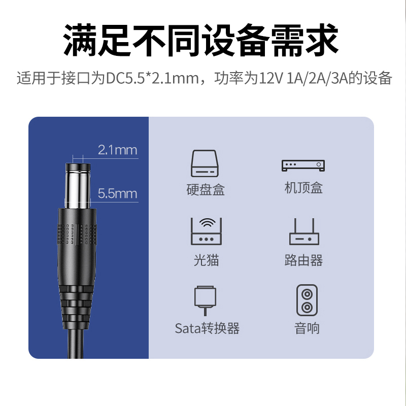 绿联12V/5VDC电源适配器2A3A1A线室内光猫监控电脑显示屏LED台灯电子琴音响摄像头机顶盒移动硬盘路由器充电
