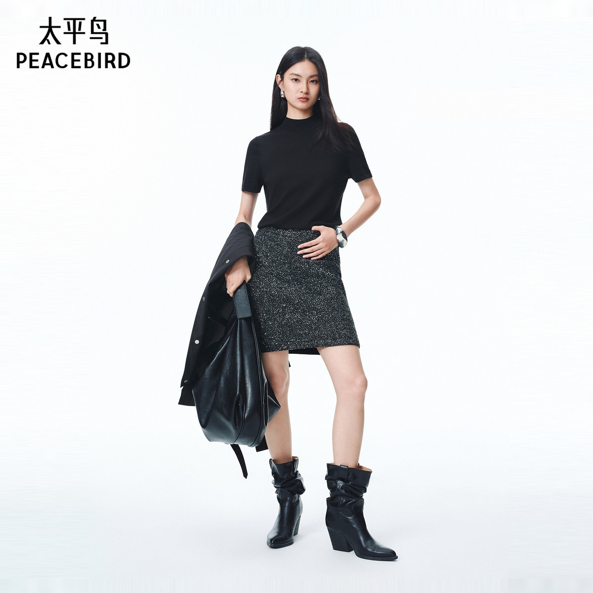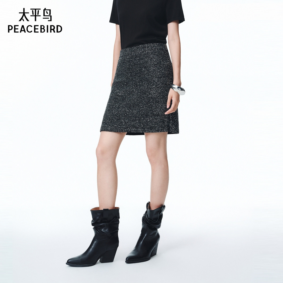 太平鸟亮闪半身裙短裙女
