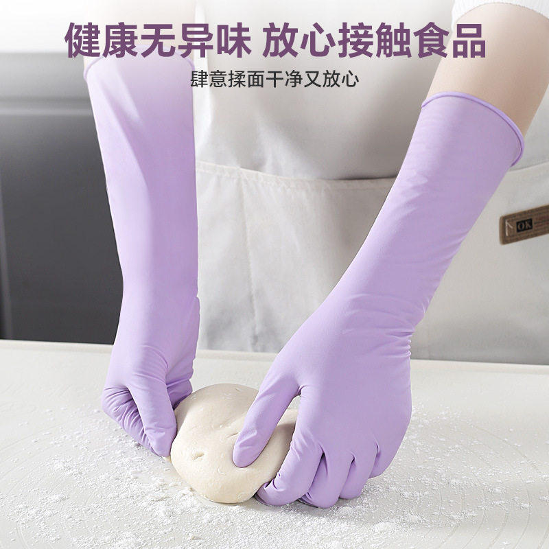 秉秀丁腈手套家务洗碗厨房食品级防水耐用乳胶一次性加长清洁橡胶