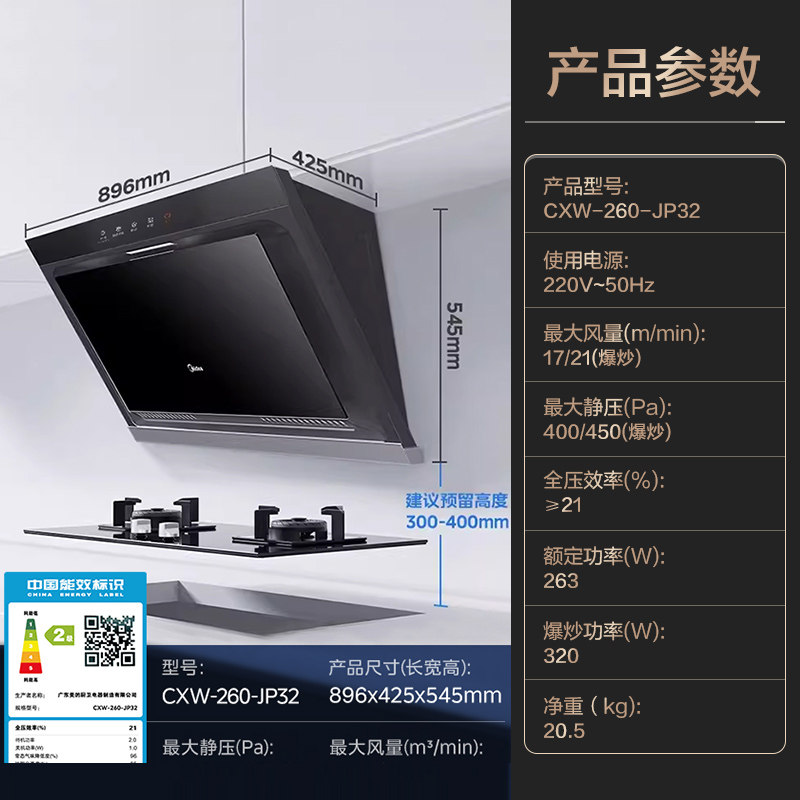 美的抽油烟机燃气灶套餐侧吸式智能家用热水器消毒柜厨房三件套装