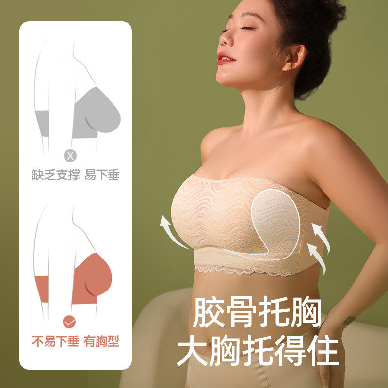 大胸无肩带内衣女防下垂聚拢显小夏季薄款抹胸防滑隐形裹胸文胸罩