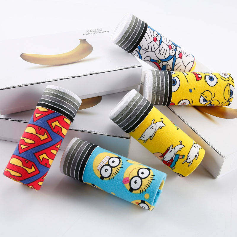 男士内裤青年个性感潮男中腰可爱男学生卡通平角内裤四角