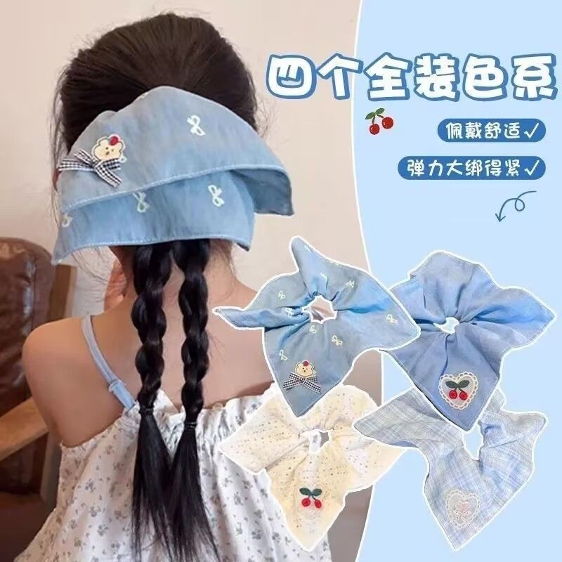 儿童刺绣方巾大肠发圈女童高级感扎头发低马尾头绳小女孩洋气发饰