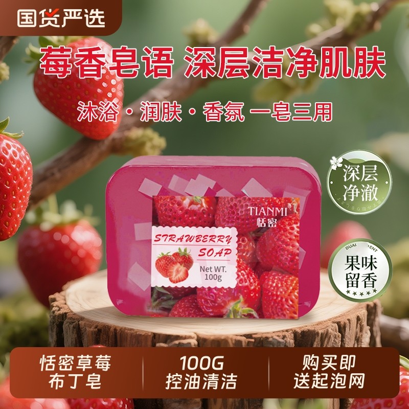 【拍一发二】恬密草莓布丁皂天然水果芳香皂沐浴洗脸手工皂控油皂