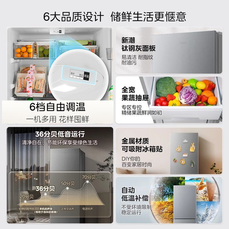 【政府补贴】美的182L小冰箱以旧换新双开两门出租节能低噪小户型