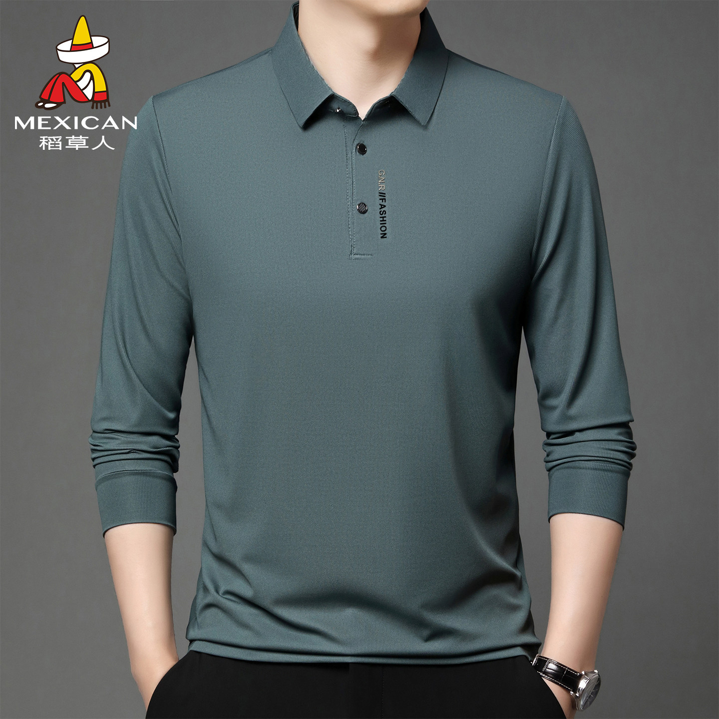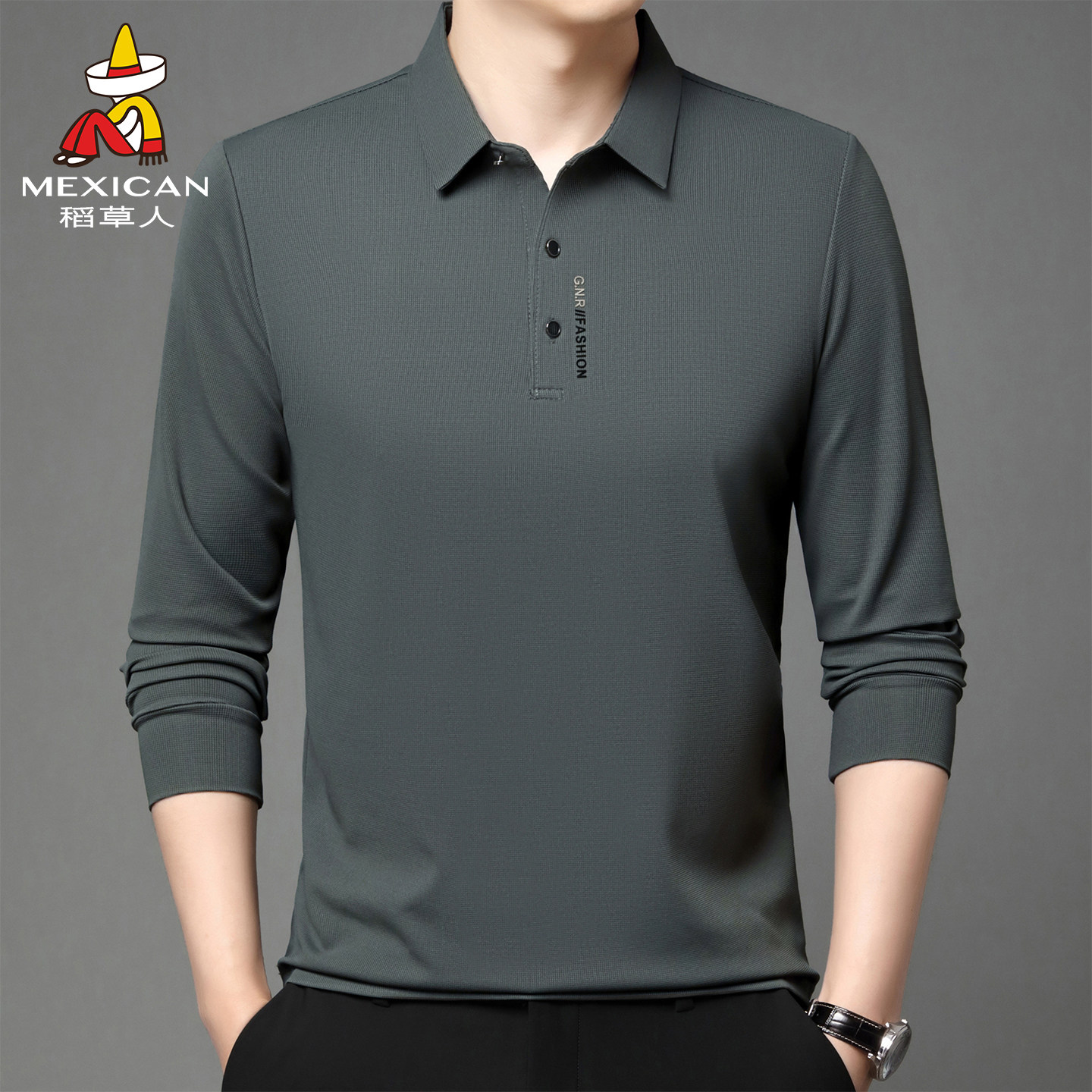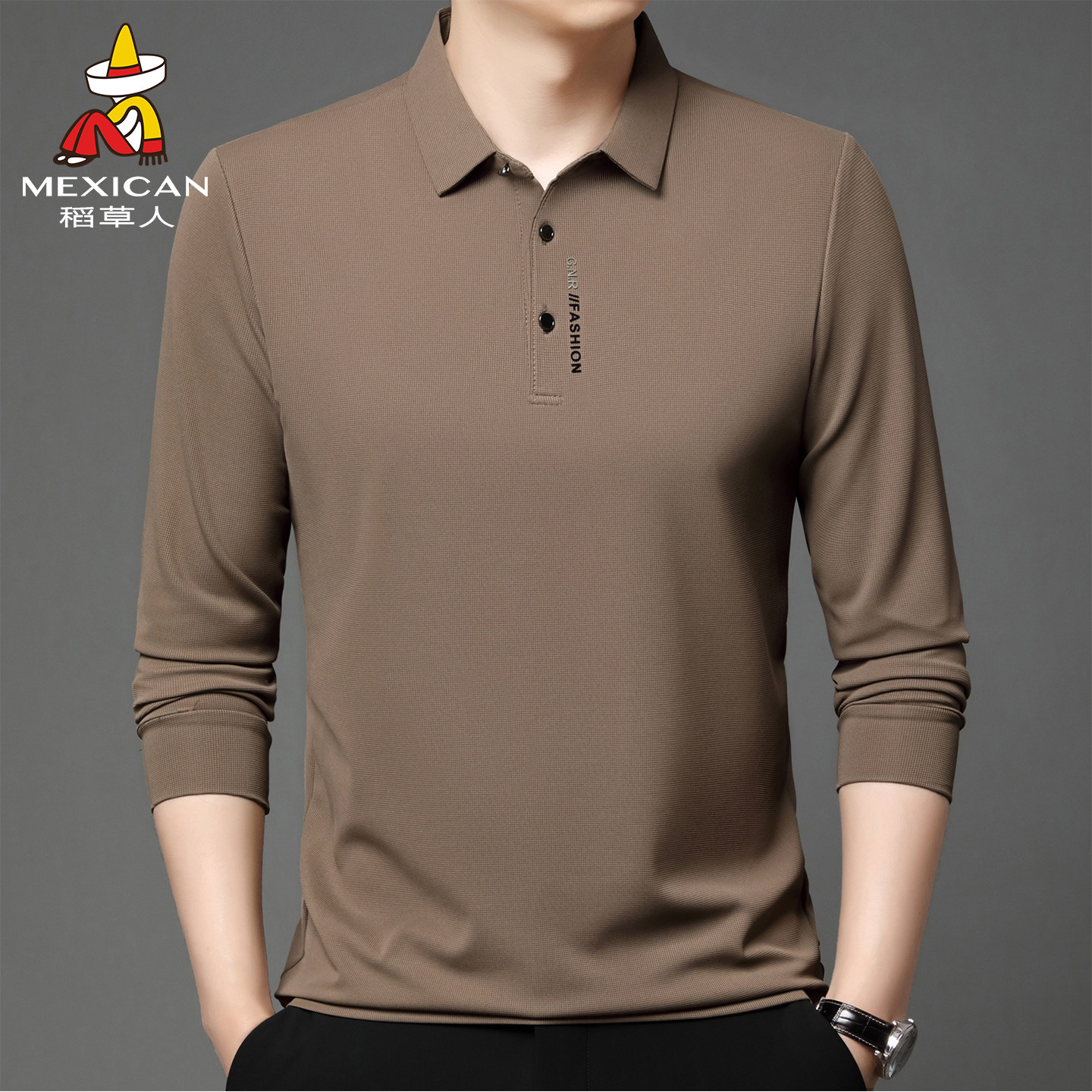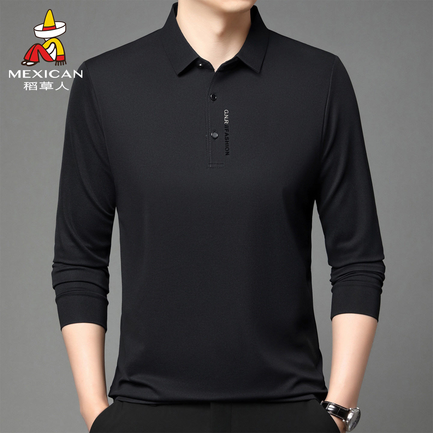 稻草人长袖t恤中年男士翻领polo衫2025秋冬季爸爸加绒加厚打底衫J