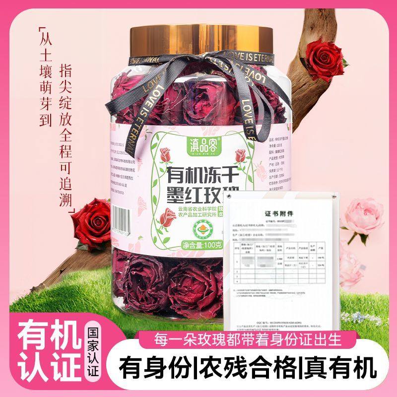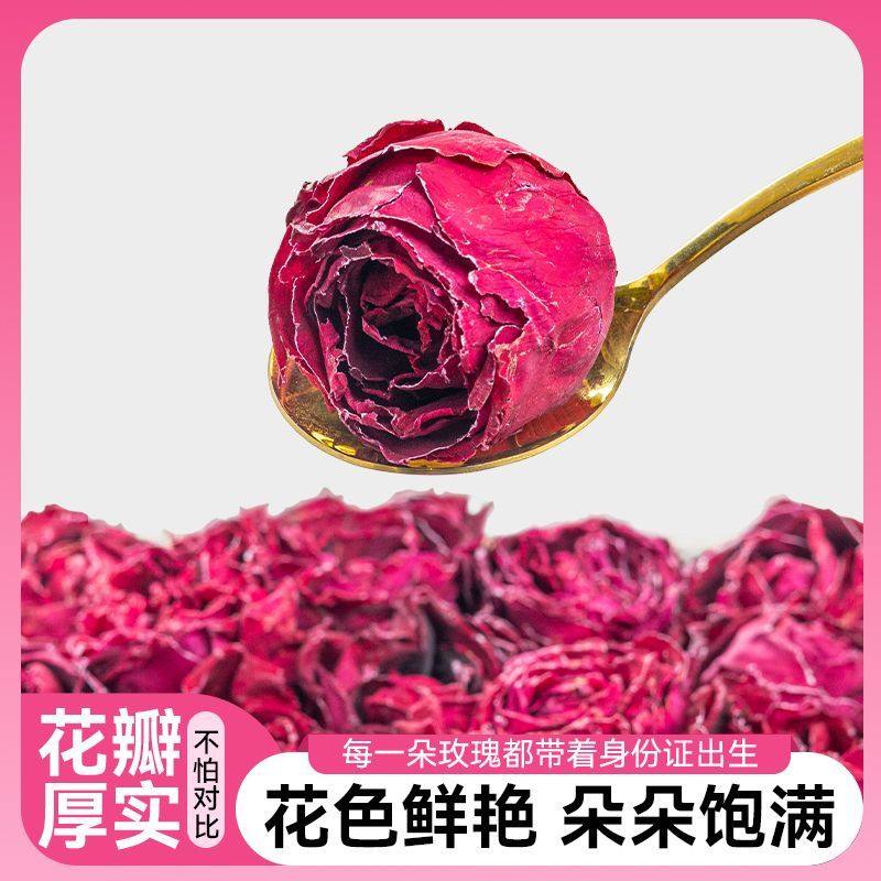 农科院有机冻干墨红玫瑰花茶完整大朵花冠蕾干花泡茶泡水喝的花茶