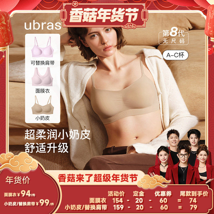 【香菇超级年货节】ubras第八代无尺码可替换肩带柔润背心文胸V