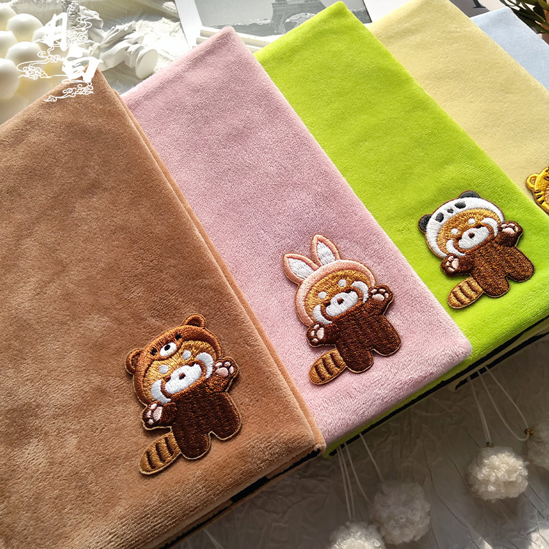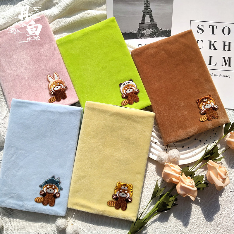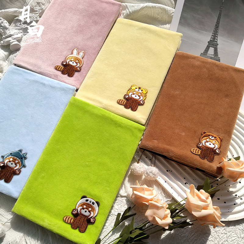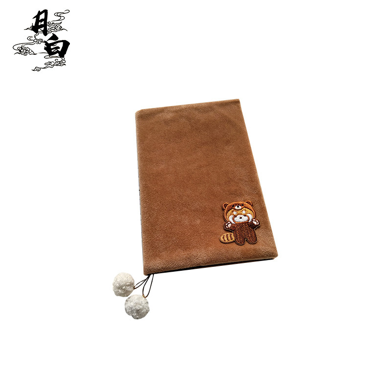 月白 小熊猫 可爱布书衣刺绣手帐手账本毛绒书皮A5A6日记本笔记本