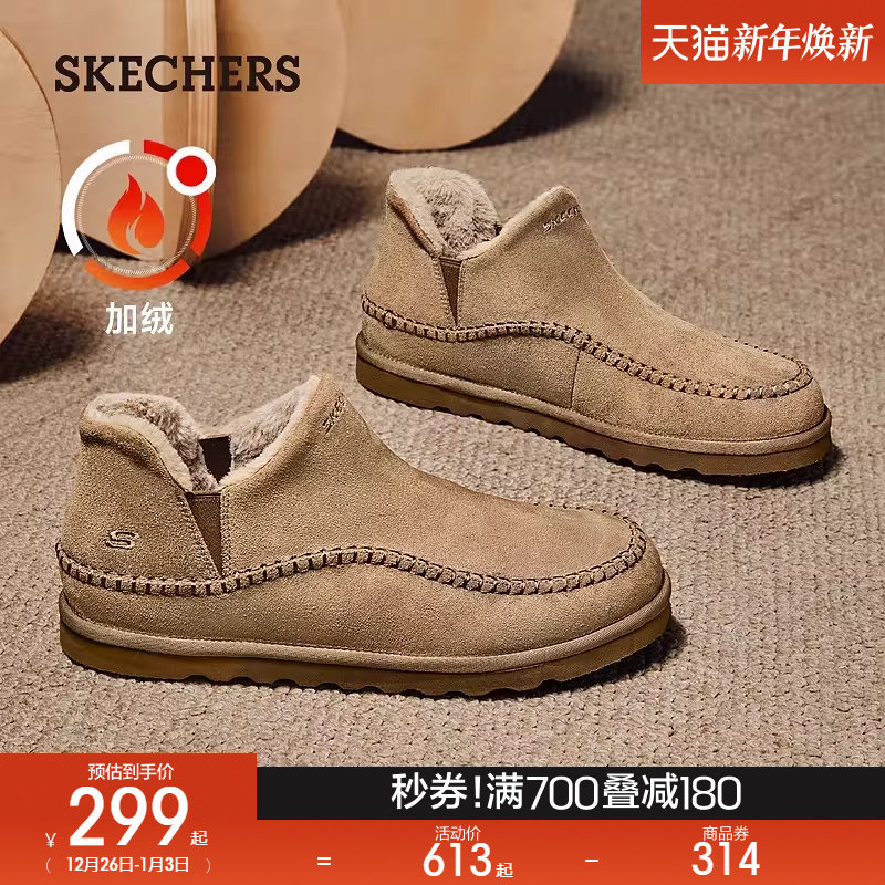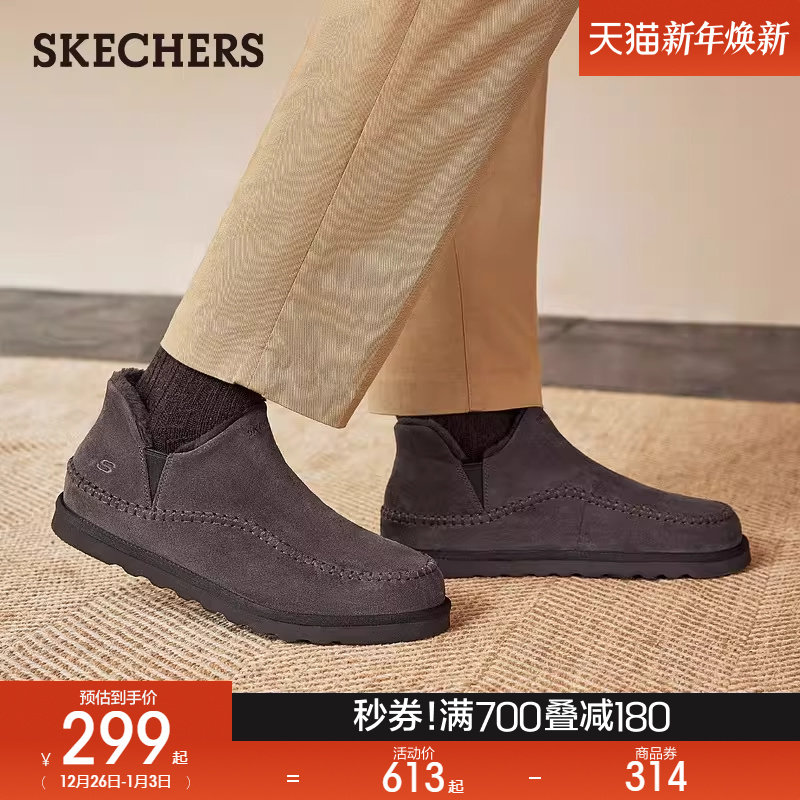 斯凯奇闪穿秋冬季新款男鞋休闲鞋保暖加绒雪地靴商务一脚蹬二棉鞋