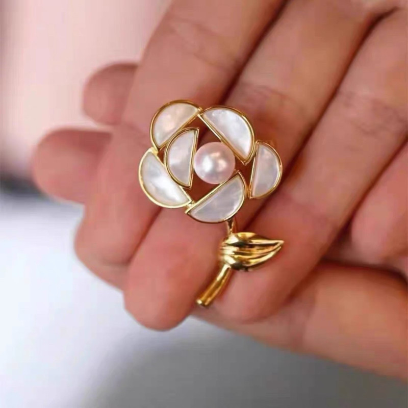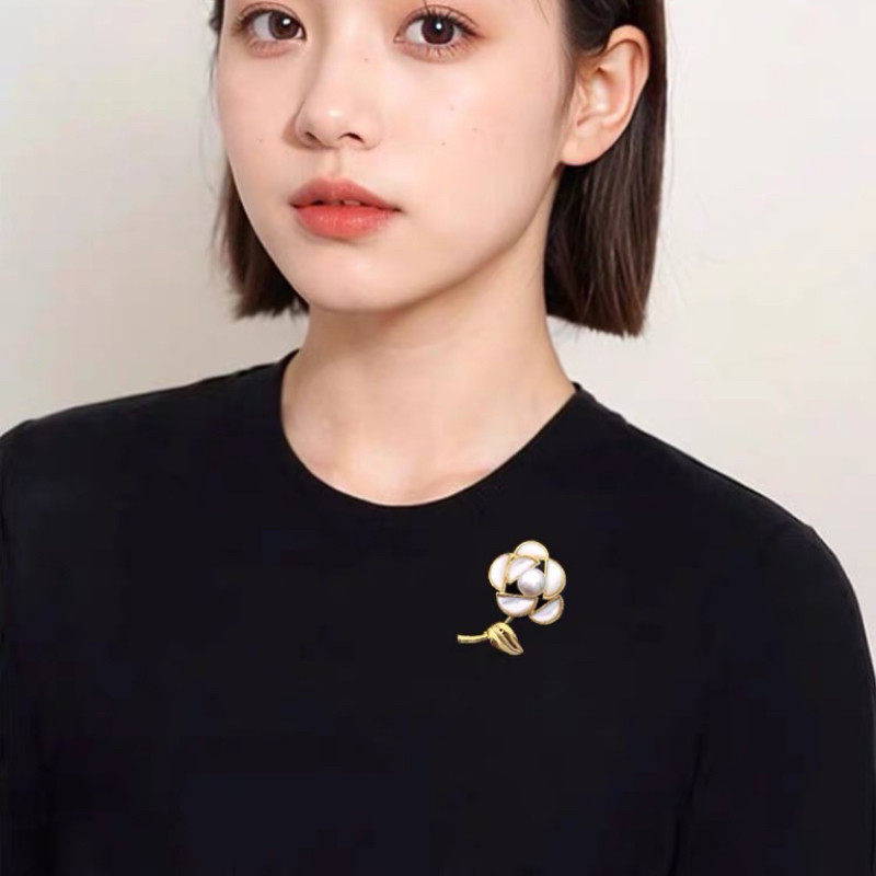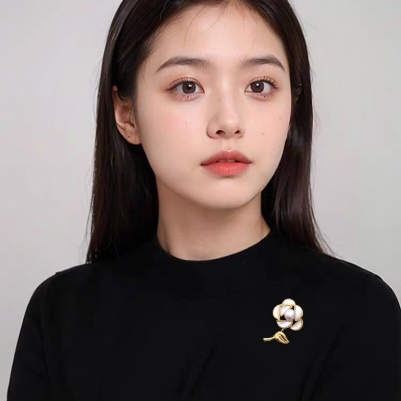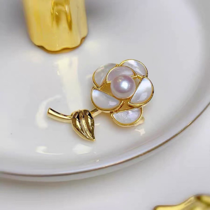 诸暨淡水珍珠胸针六叶玫瑰花气质女人胸花小香风高级感节日礼物