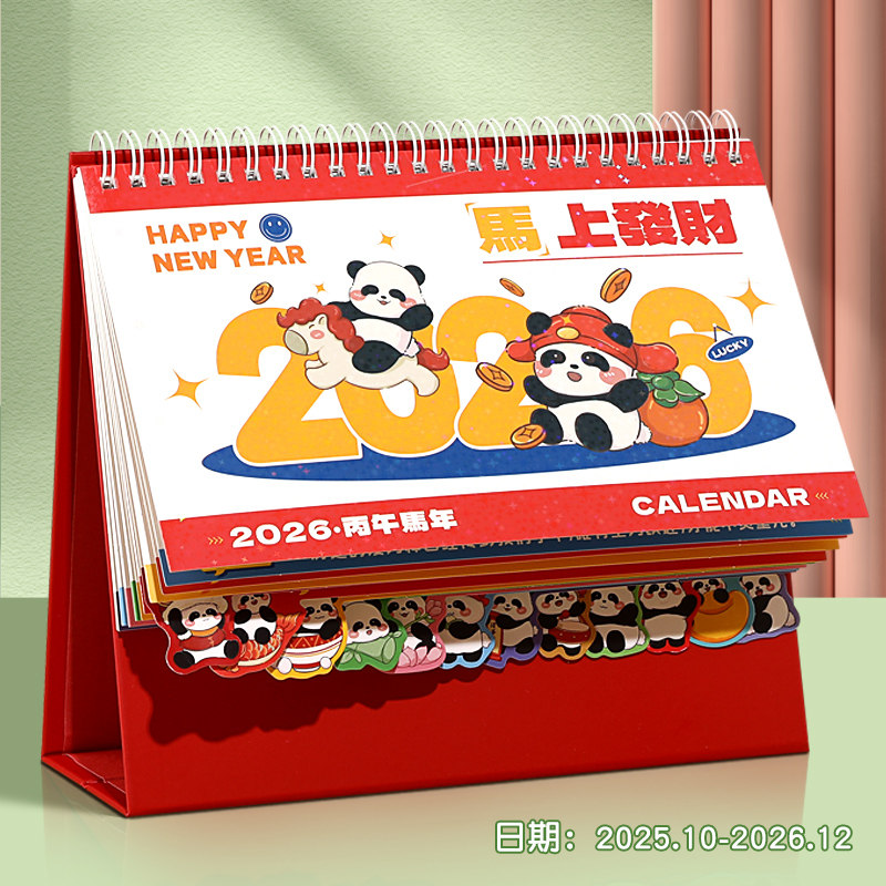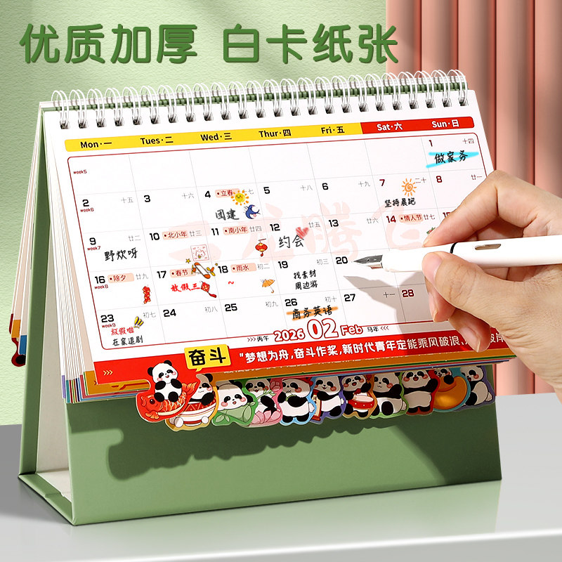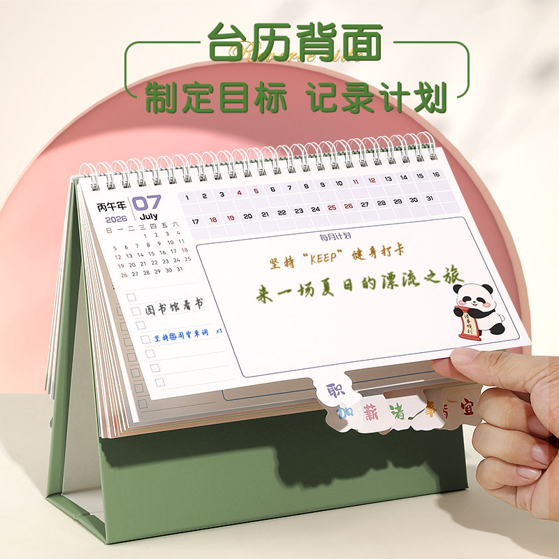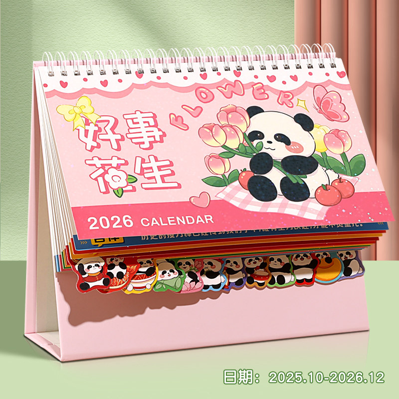 台历2025到2026年熊猫卡通日历新款记事打卡创意桌面摆件日程计划表高颜值月历商务公司企业广告位logo定做