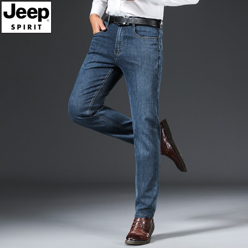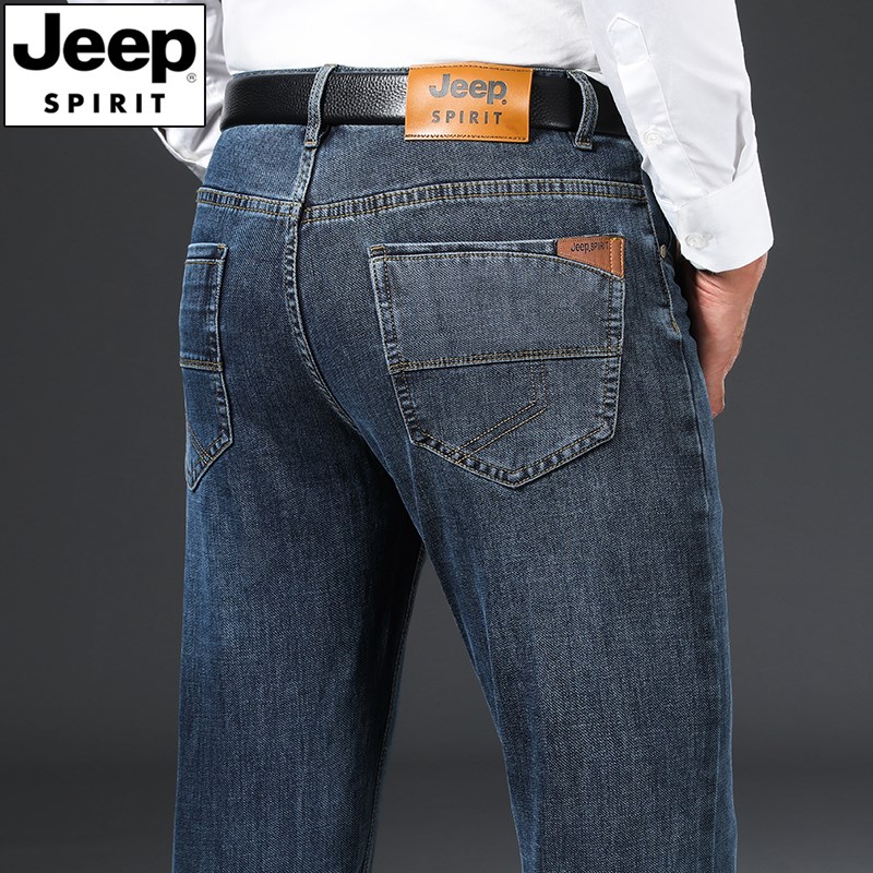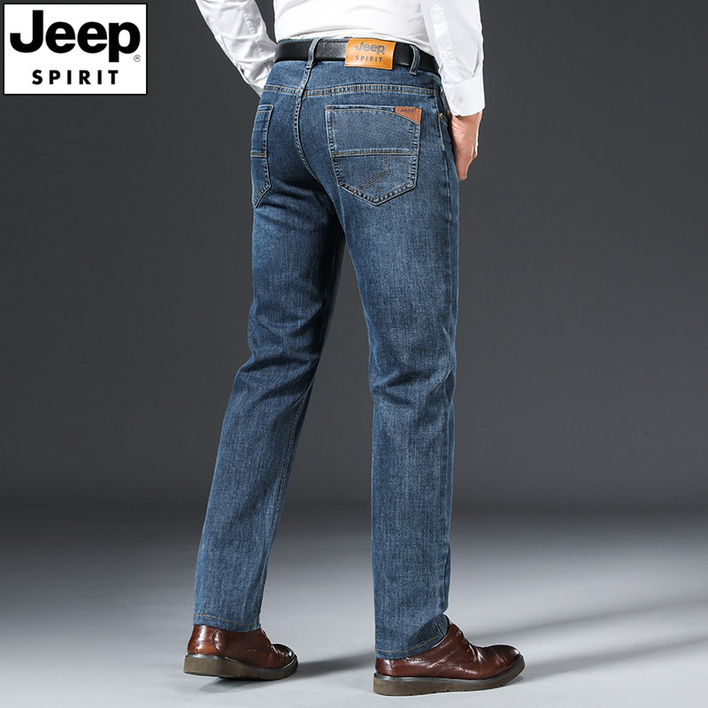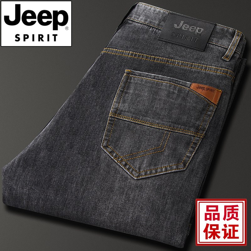 JEEP吉普牛仔裤男秋冬厚款宽松直筒大码休闲耐穿高端中年大牌长裤
