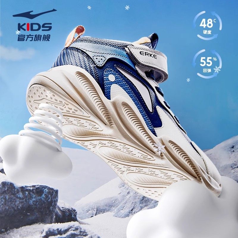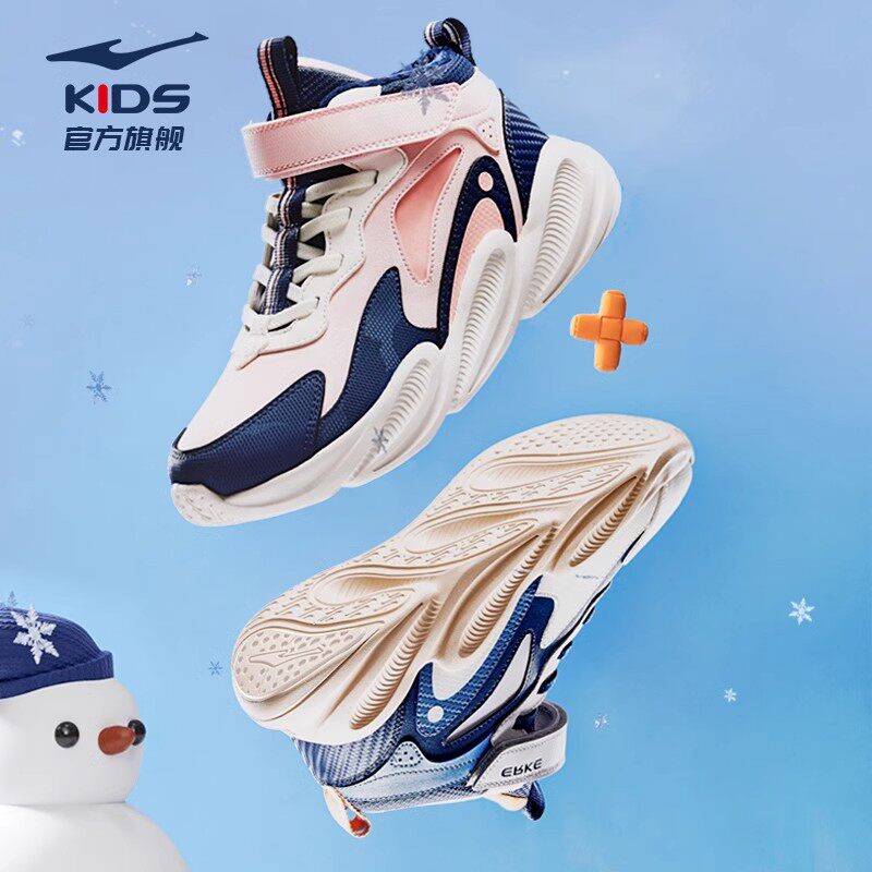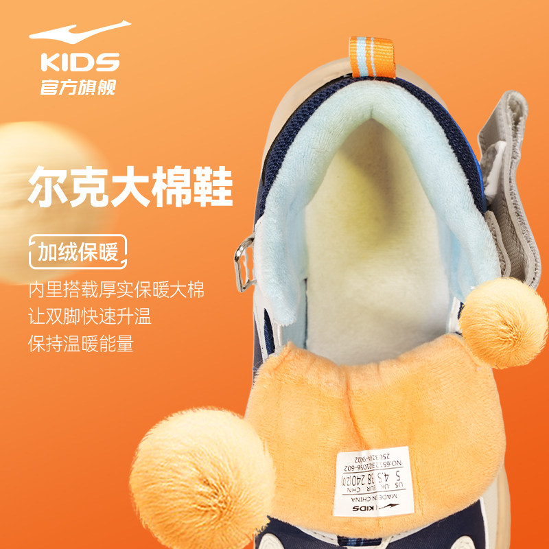 星焰鸿星尔克童鞋男童冬季高帮鞋子小童跑步鞋加绒加厚运动鞋棉鞋