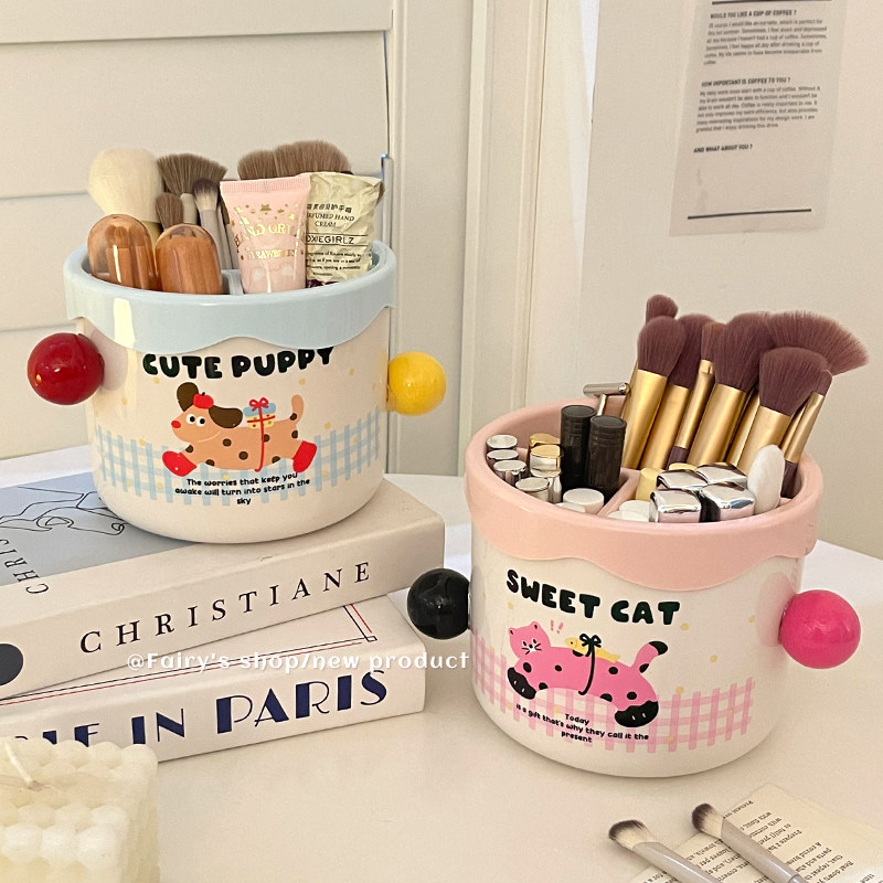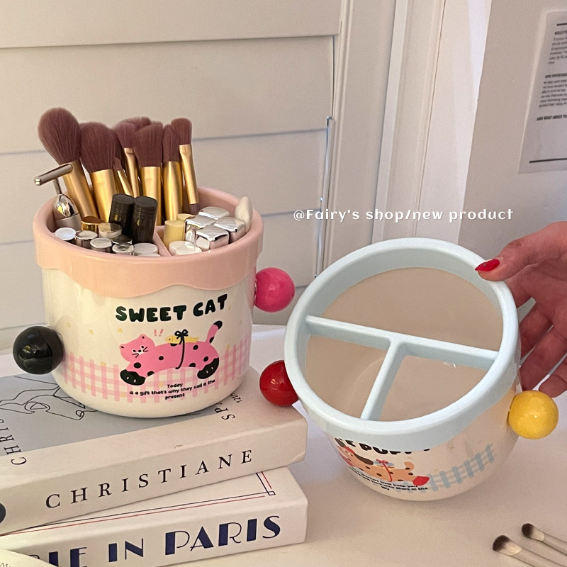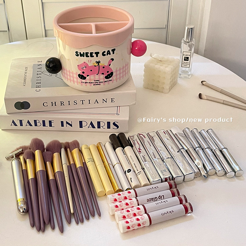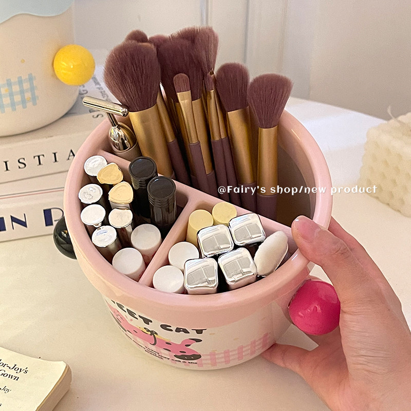 高颜值化妆刷收纳筒女生宿舍家用梳妆台大容量分区口红眉笔整理盒