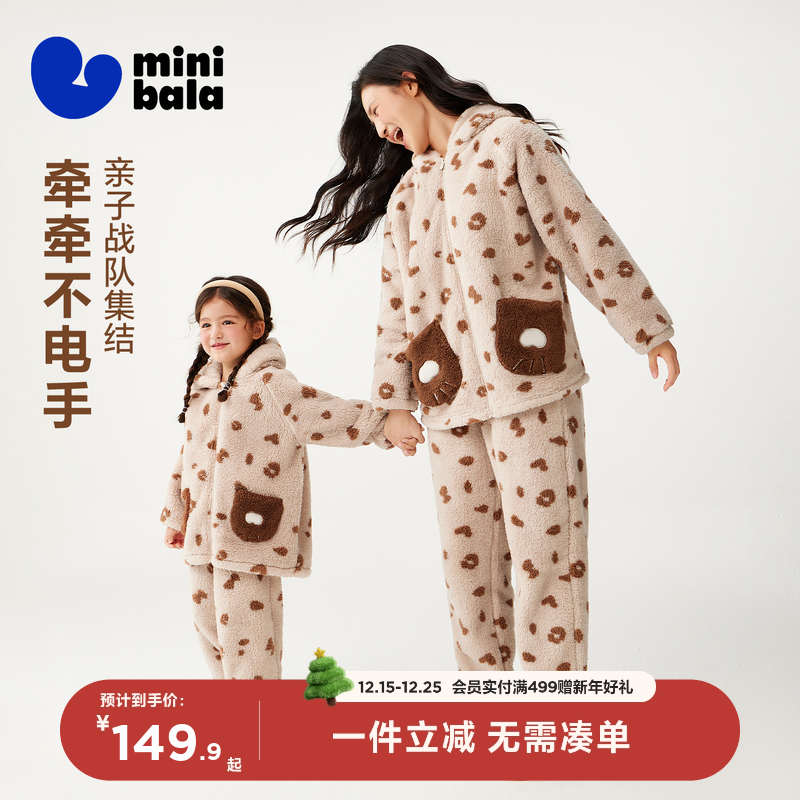 迷你巴拉巴拉亲子家居服套装儿童男女童宝宝保暖珊瑚绒萌趣可外出