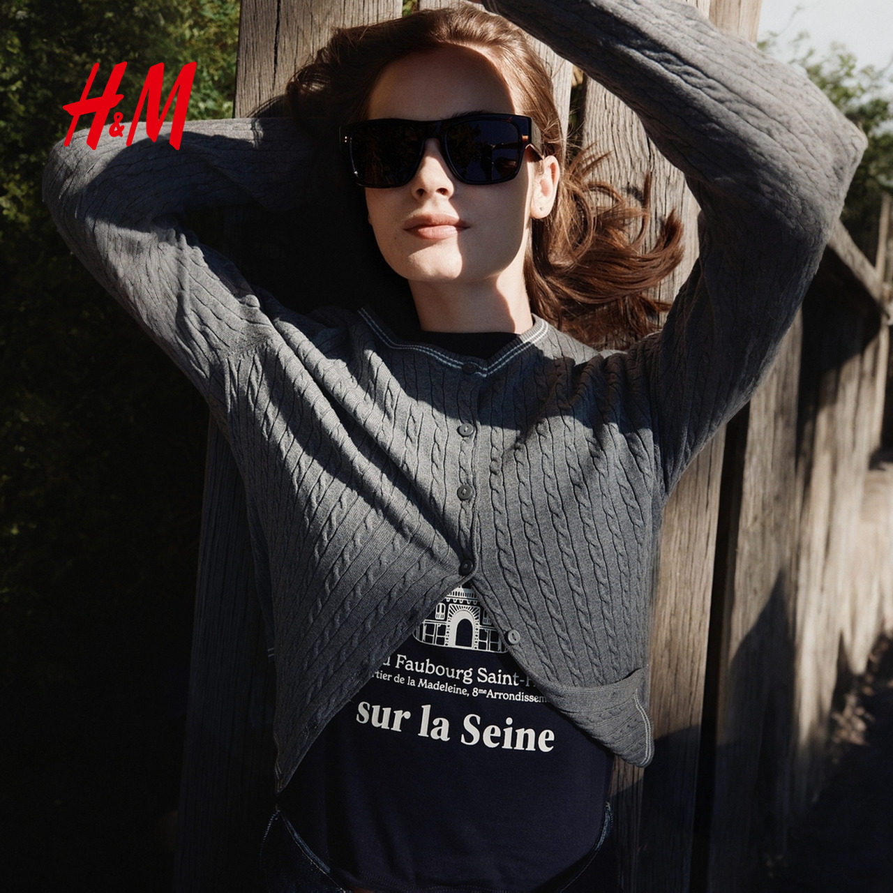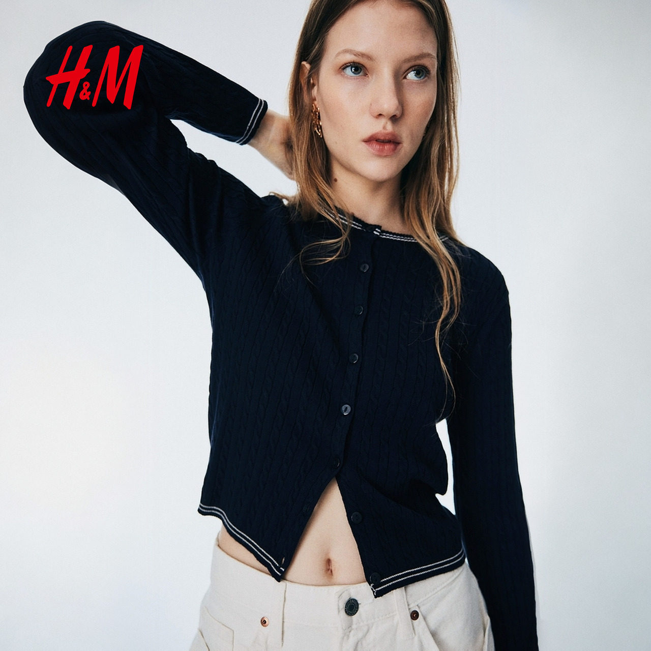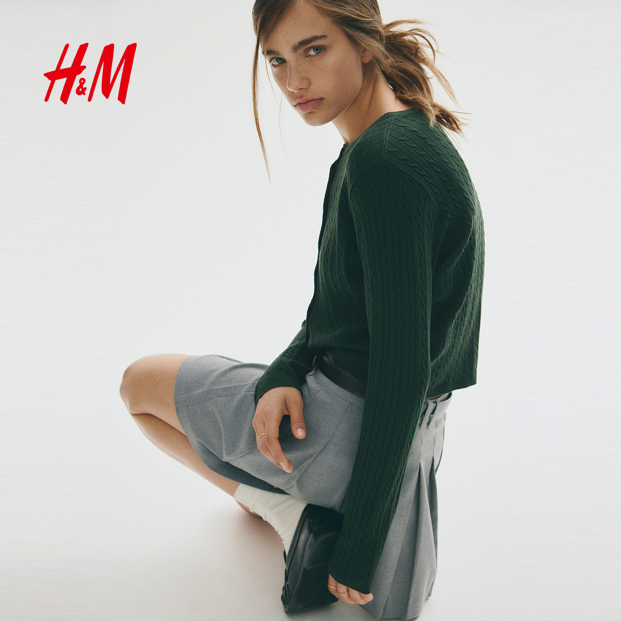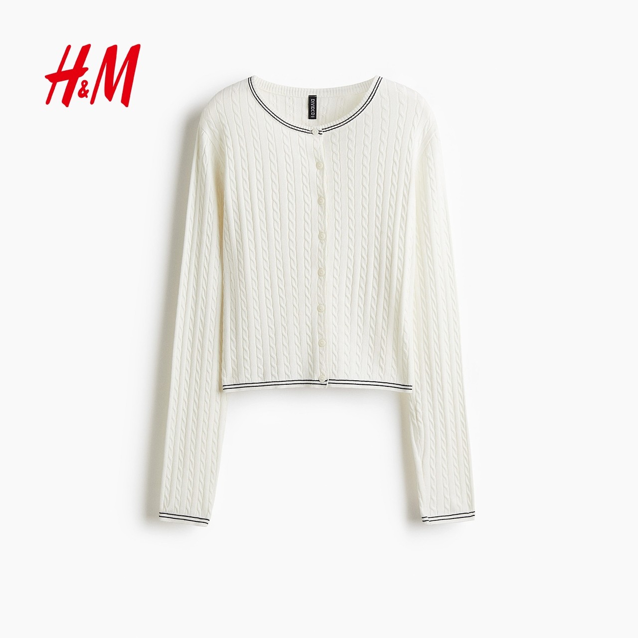 HM女装毛针织衫2025冬季新款圆领时尚气质雅致绞花开衫1289653