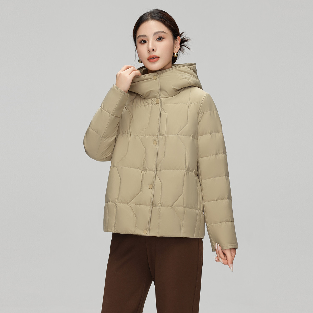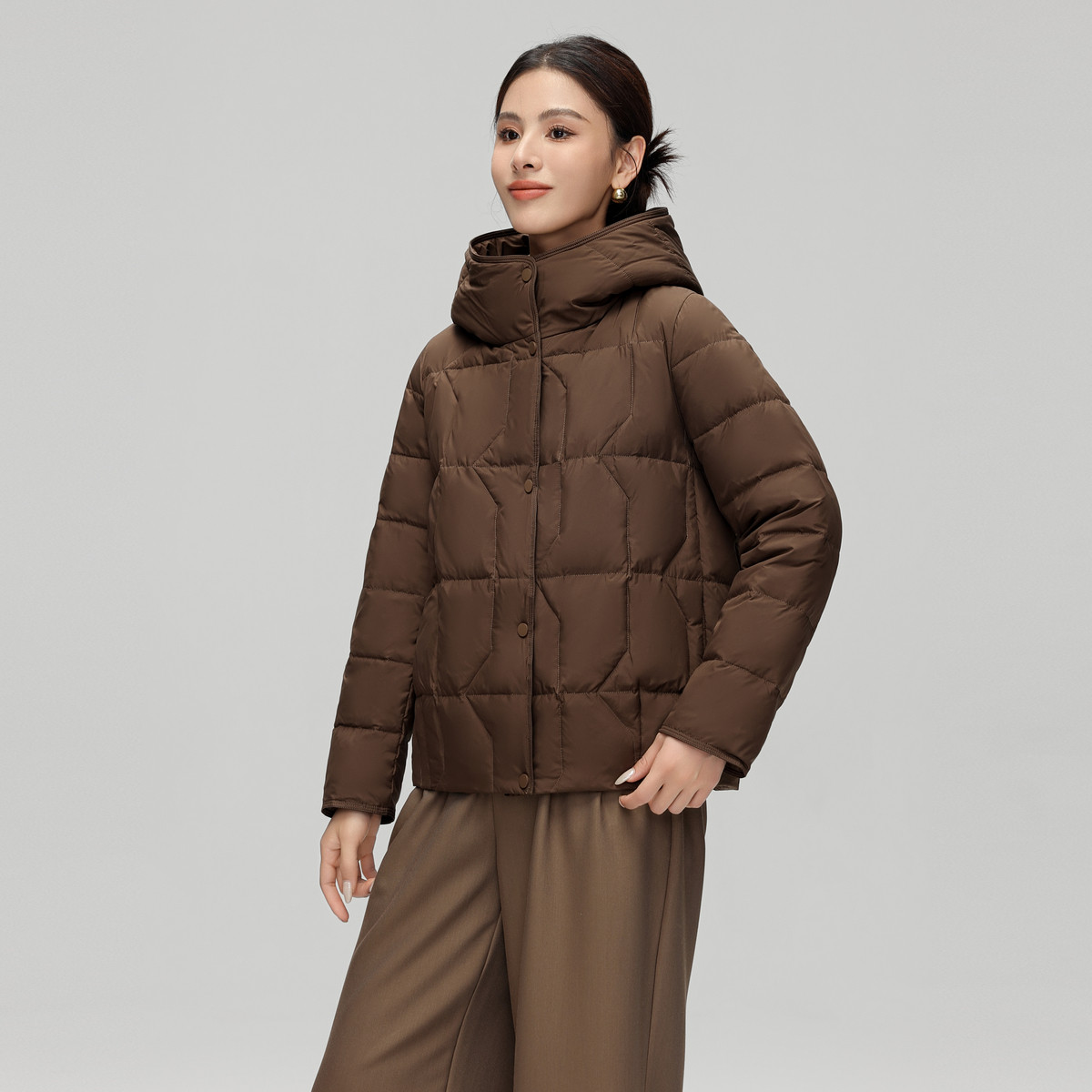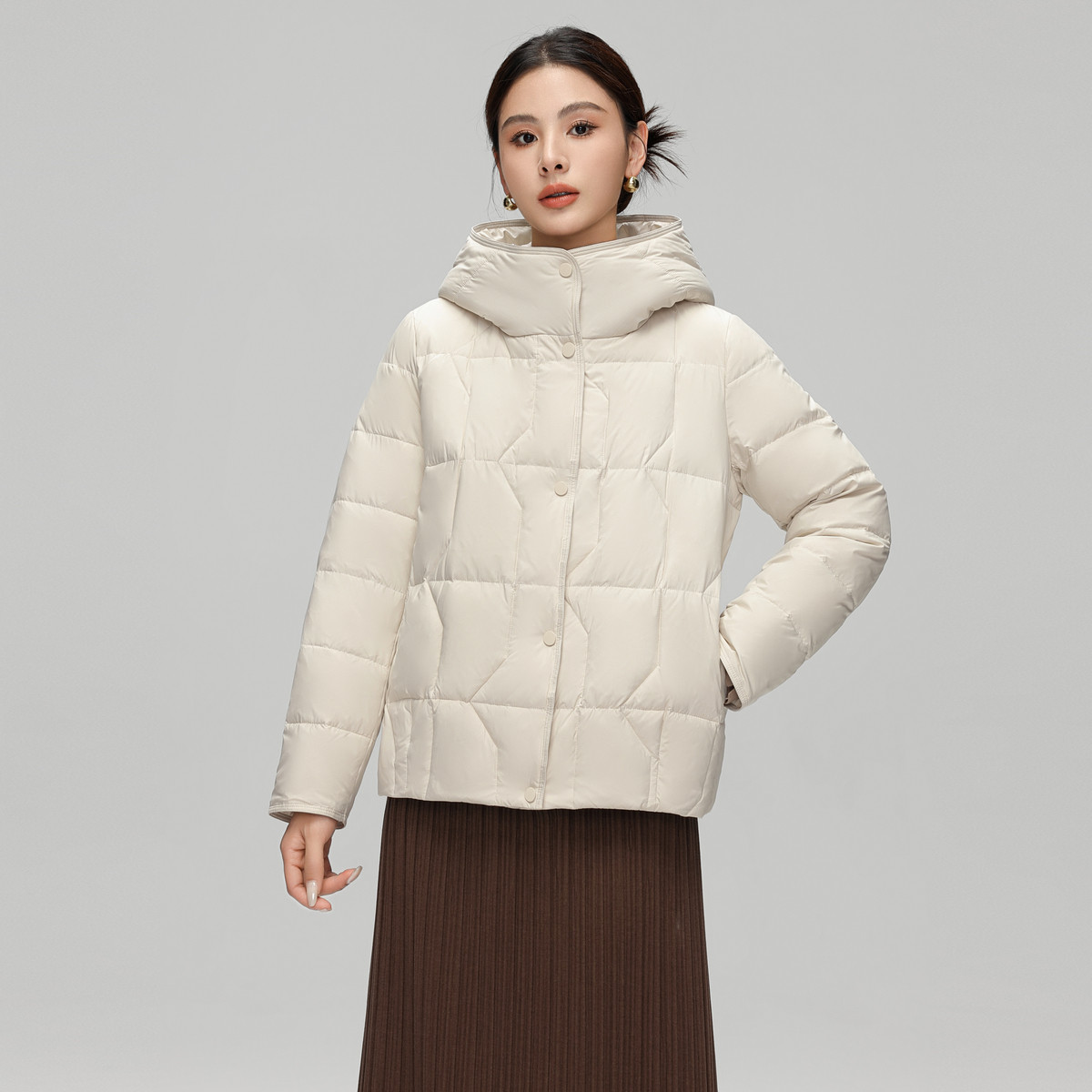 雪中飞2025冬新款女士短款连帽羽绒服妈妈款简约时尚纯色暖御寒
