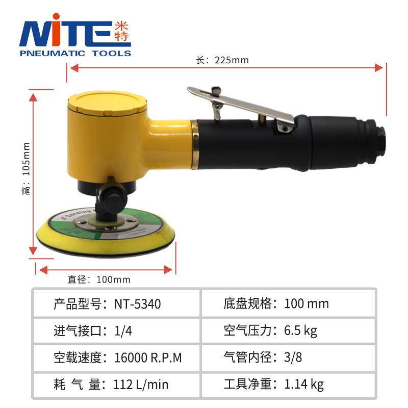 米特NT-5340气动打磨机汽车打蜡抛光4寸同心干磨机气磨工具100mm
