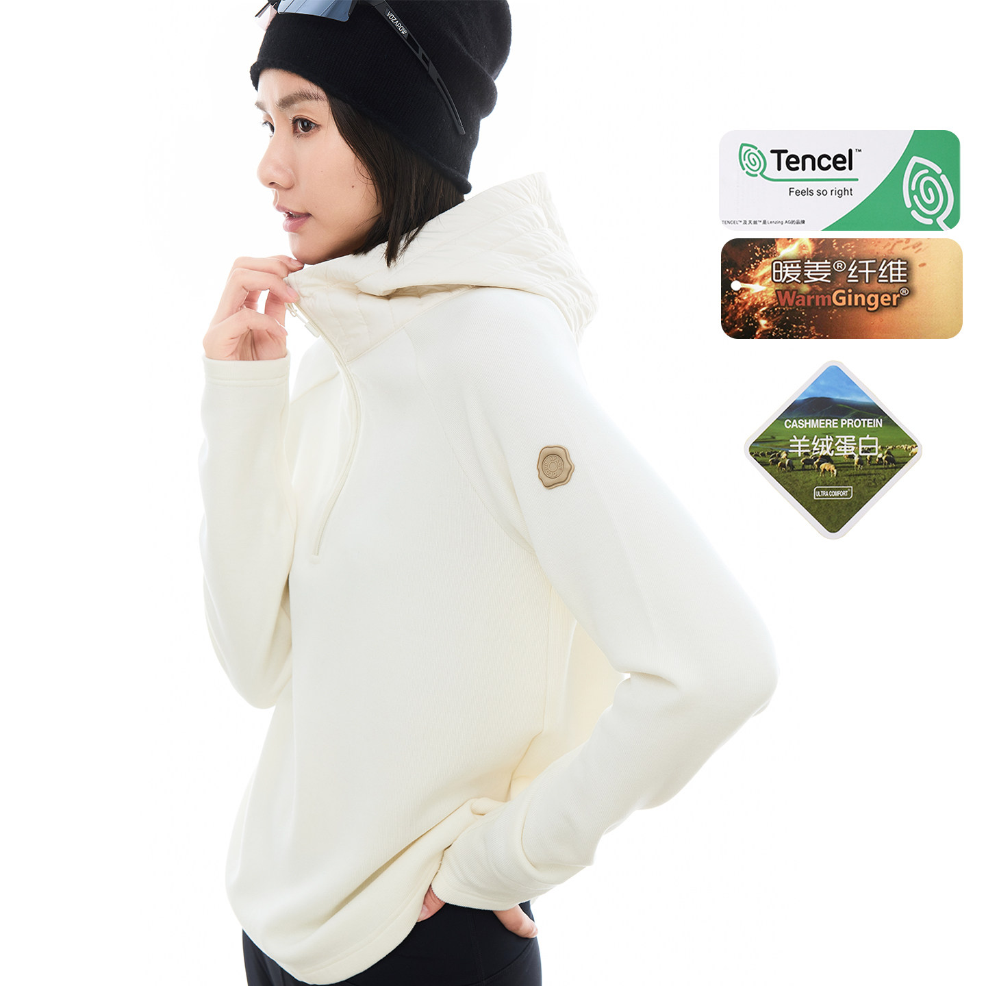 CLOUDSPACE【云帛】针梭织拼接连帽抓绒插肩卫衣2025冬保暖上衣女