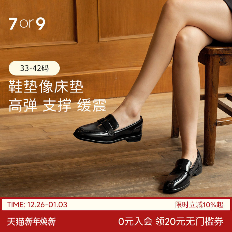 7or9乐福鞋女鞋秋冬牛皮一脚蹬英伦风小皮鞋通勤平底单鞋黑糖曲奇