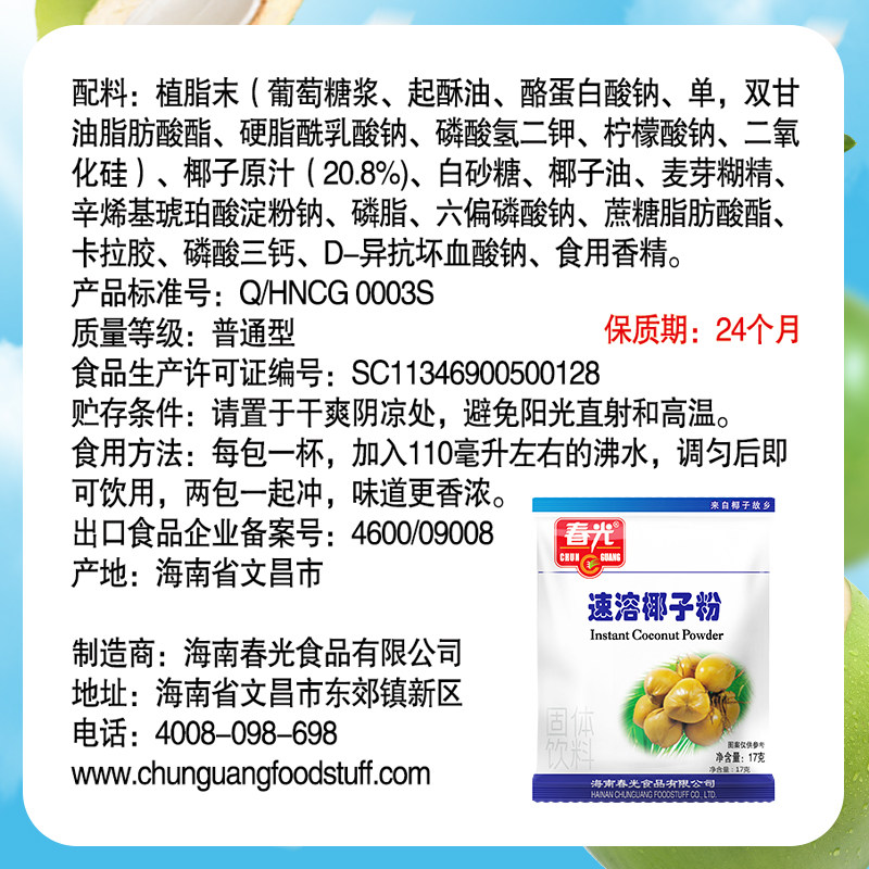 春光食品海南特产速溶椰子粉17g椰奶椰汁粉早餐冲饮冲泡饮料咖啡