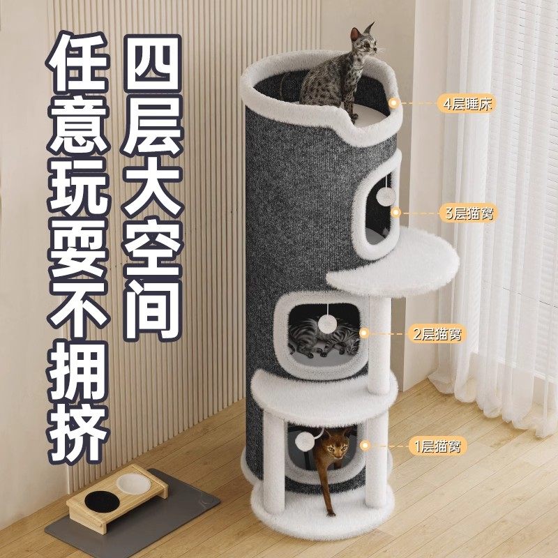猫爬架猫窝冬季保暖多层半封闭四季通用猫咪窝冬天双层树洞躲避窝