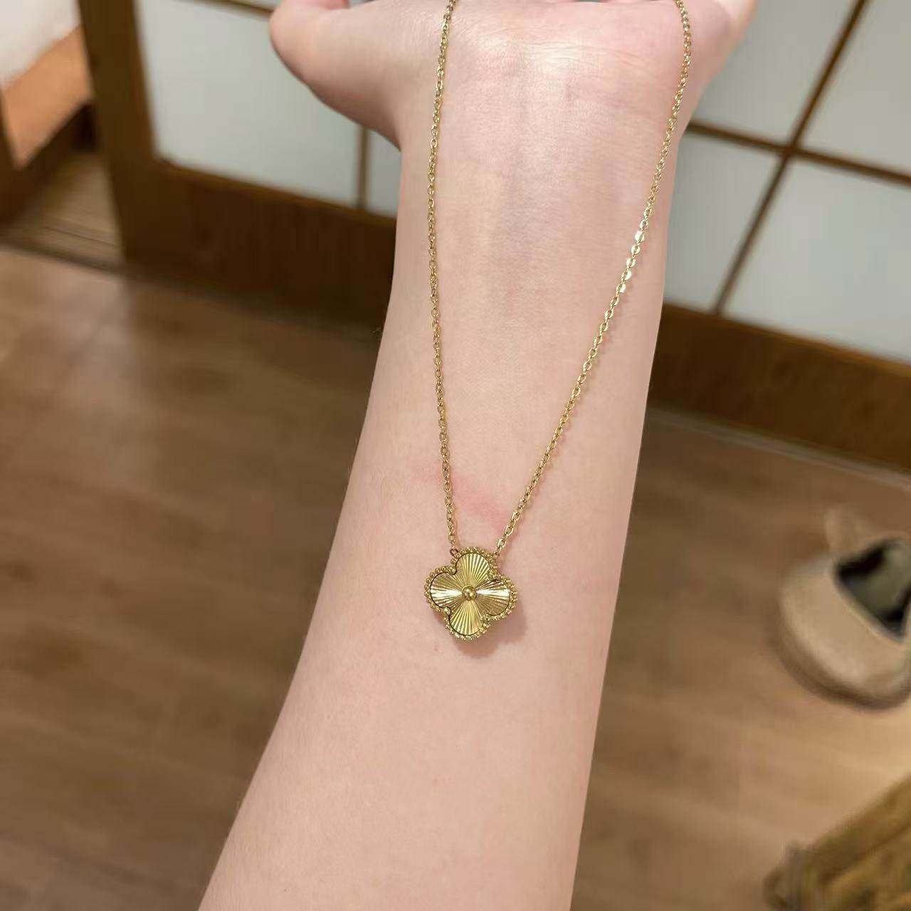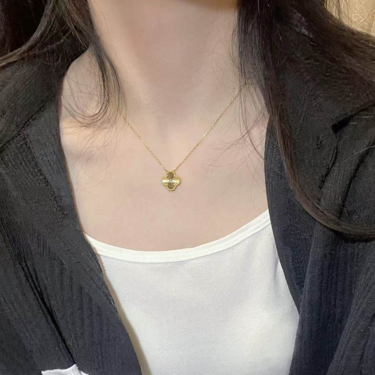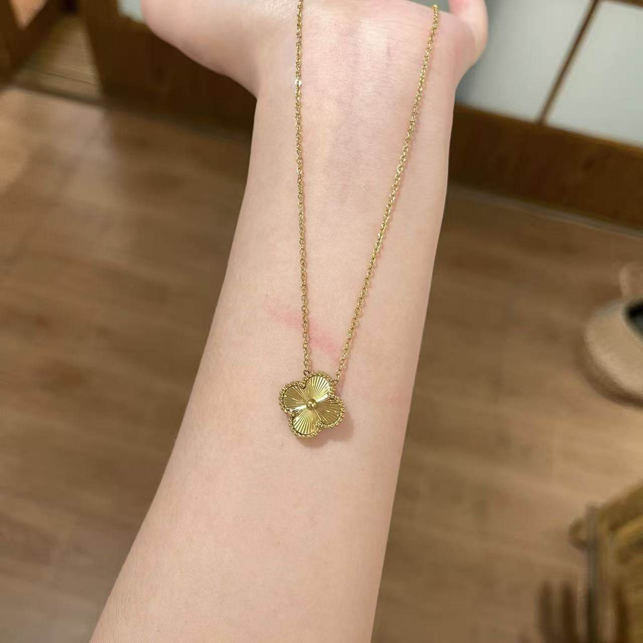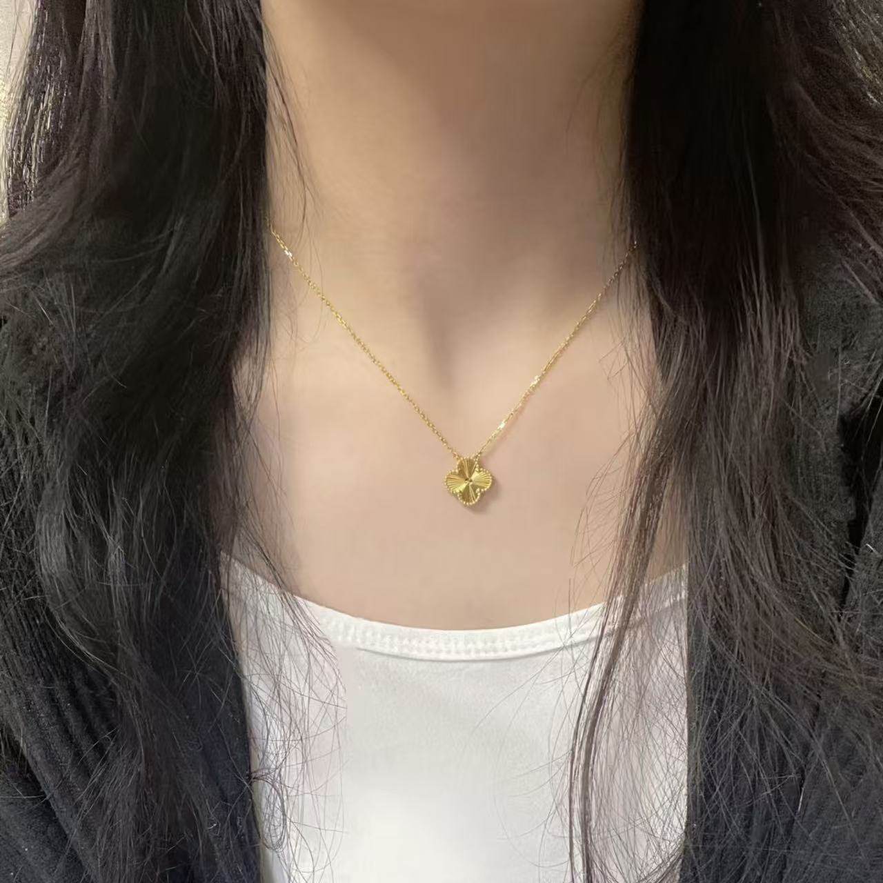 四叶草项链18K玫瑰金红玉髓孔雀石吊坠轻奢高级感女友情人节礼物