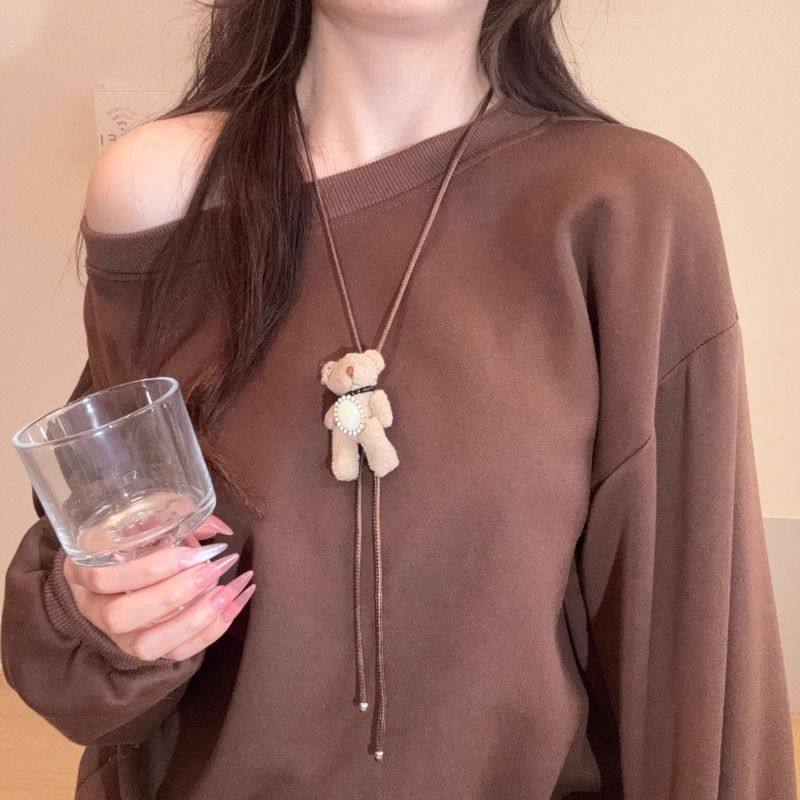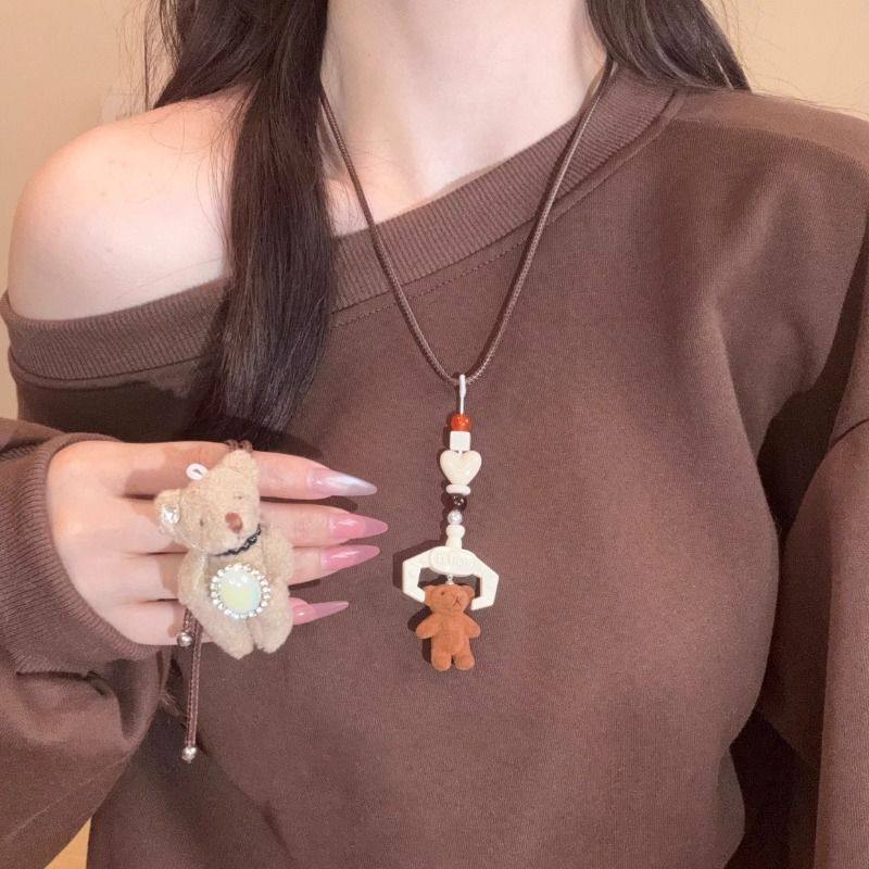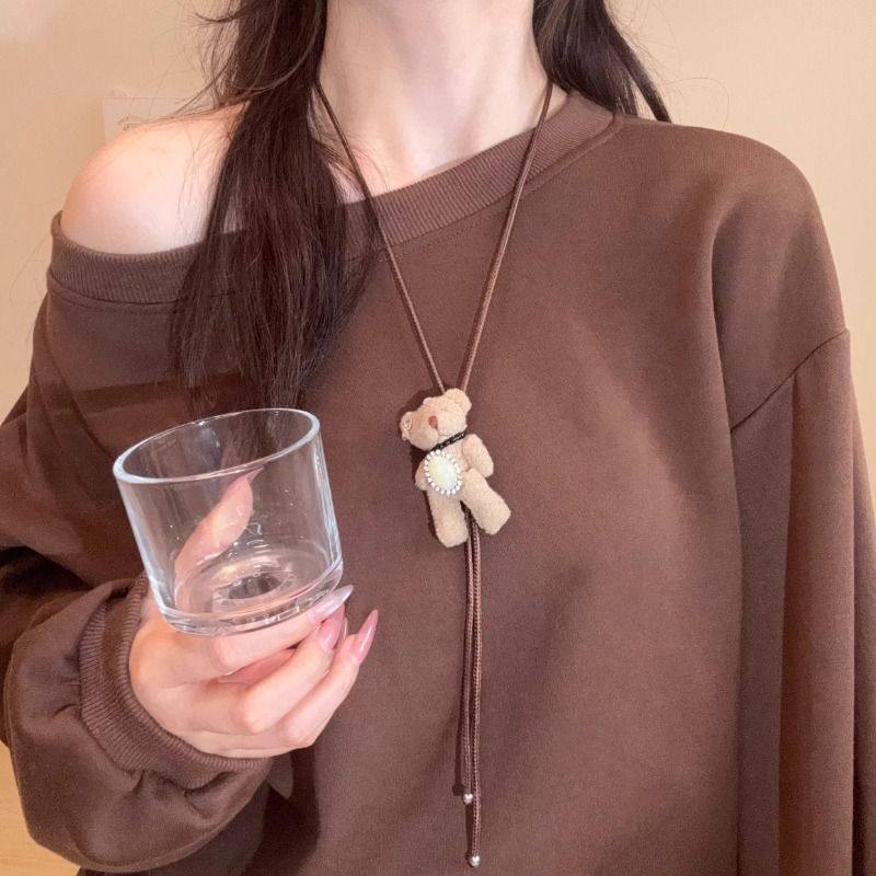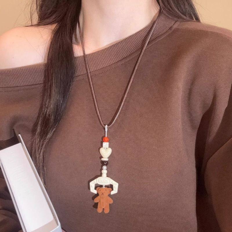 抓娃娃超可爱卡通小熊吊坠项链女小众设计秋冬长款百搭毛衣链配饰
