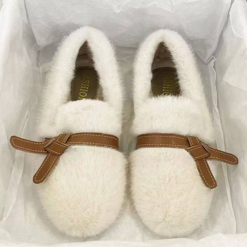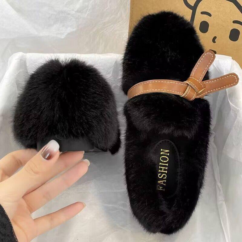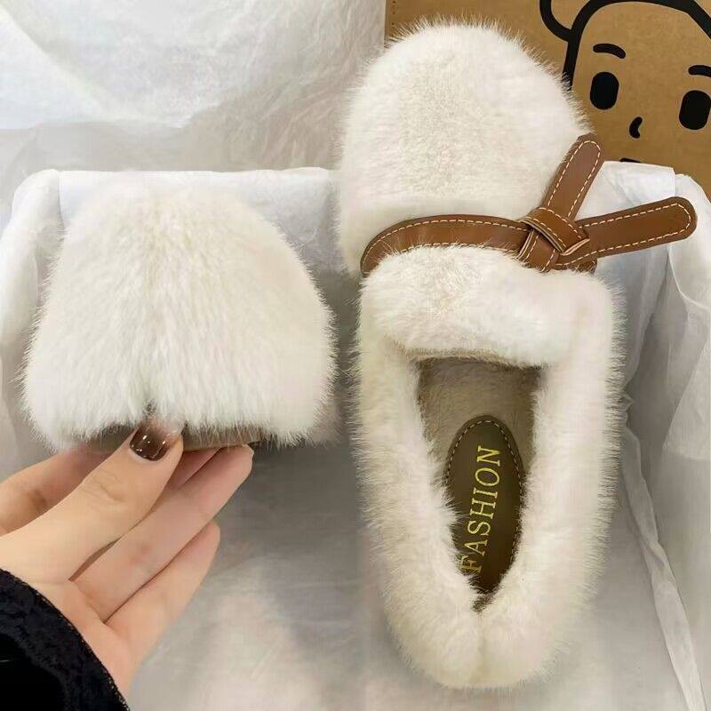 软底加绒圆头毛毛鞋女秋冬新款外穿温柔网红一脚蹬豆豆鞋冬季保暖